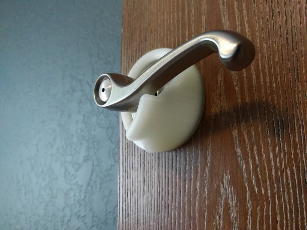 Sicherheitsschloss für Türgriffe, um zu verhindern, dass kleine Kinder und Haustiere Türen öffnen. Dieses Produkt ist besonders effektiv mit leicht zu manövrierenden Griffen wie den „Flair“-Griffen von Schlage und vielen anderen Modellen und Marken. Die Installation ist einfach und erfordert lediglich das Entfernen und erneute Anbringen des Türgriffs mit angebrachtem neuen Schloss. Alternativ kann das Gerät auch ohne Demontage des Türgriffs montiert werden, wenn genügend Platz auf der Oberfläche vorhanden ist. Das Produkt hat einen maximalen Durchmesser der Rückplatte von 29 mm und einen Abstand von der Türoberfläche bis zur Rückseite des Griffs von 47 mm.