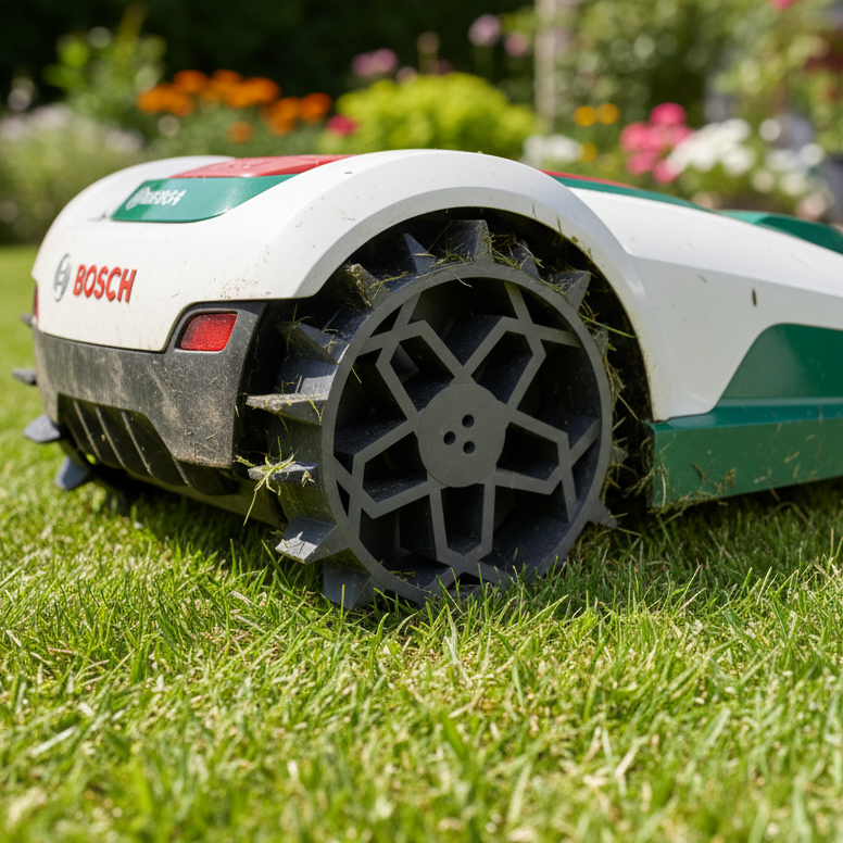 - Det dybe hjulmønster reducerer risikoen for, at robotplæneklipperen kører fast.