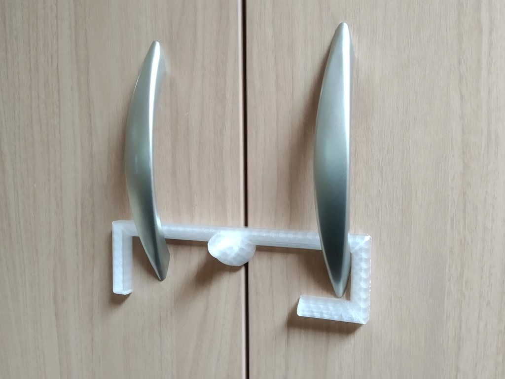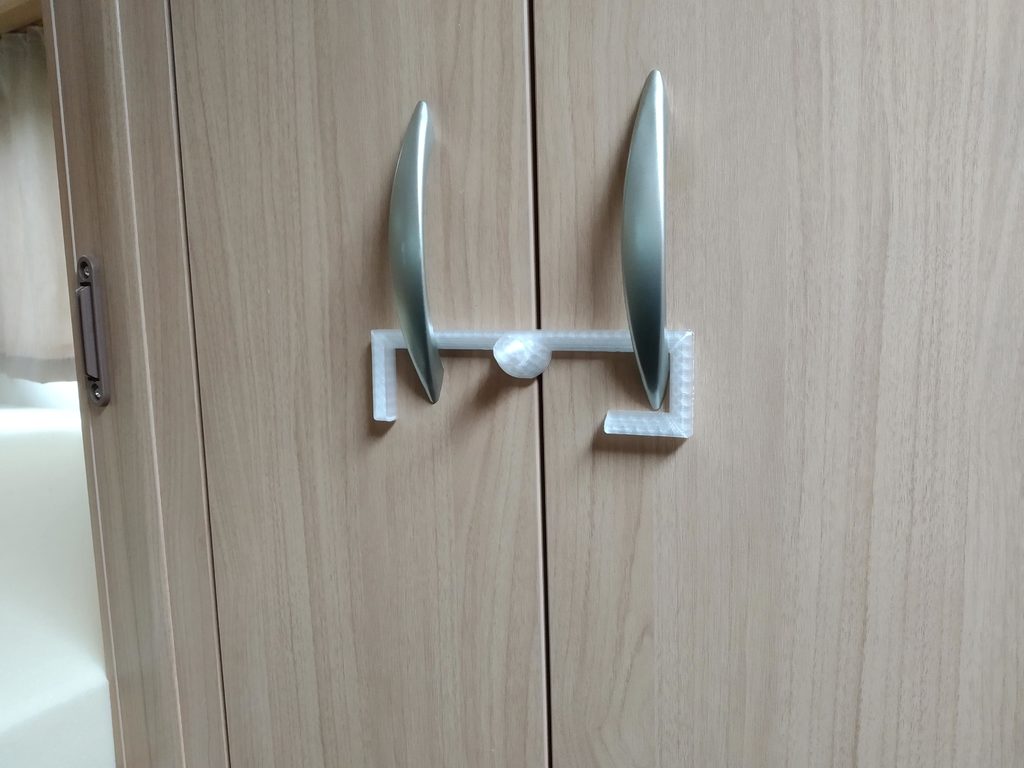 Ein kleines Schloss, das die Schranktüren während des Transports im Wohnwagen geschlossen hält. Wenn sich die Schranktüren Ihres Wohnwagens während der Fahrt öffnen, könnte dies eine praktische Lösung sein. Es handelt sich um einen einfachen Haken, der über beiden Türgriffen einrastet und verhindert, dass sie sich öffnen.