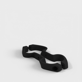 Einfache und zuverlässige Schutzblechklemme zur Montage eines kompletten Vorderradschutzblechs an einem 29er-MTB mit Carbonfaser-Vorderradgabel. Passend für viele Arten von Kohlefasergabeln und für eine stabile und robuste Montage.