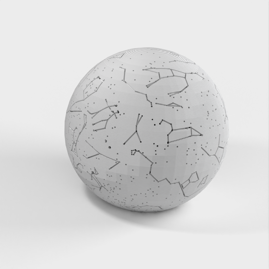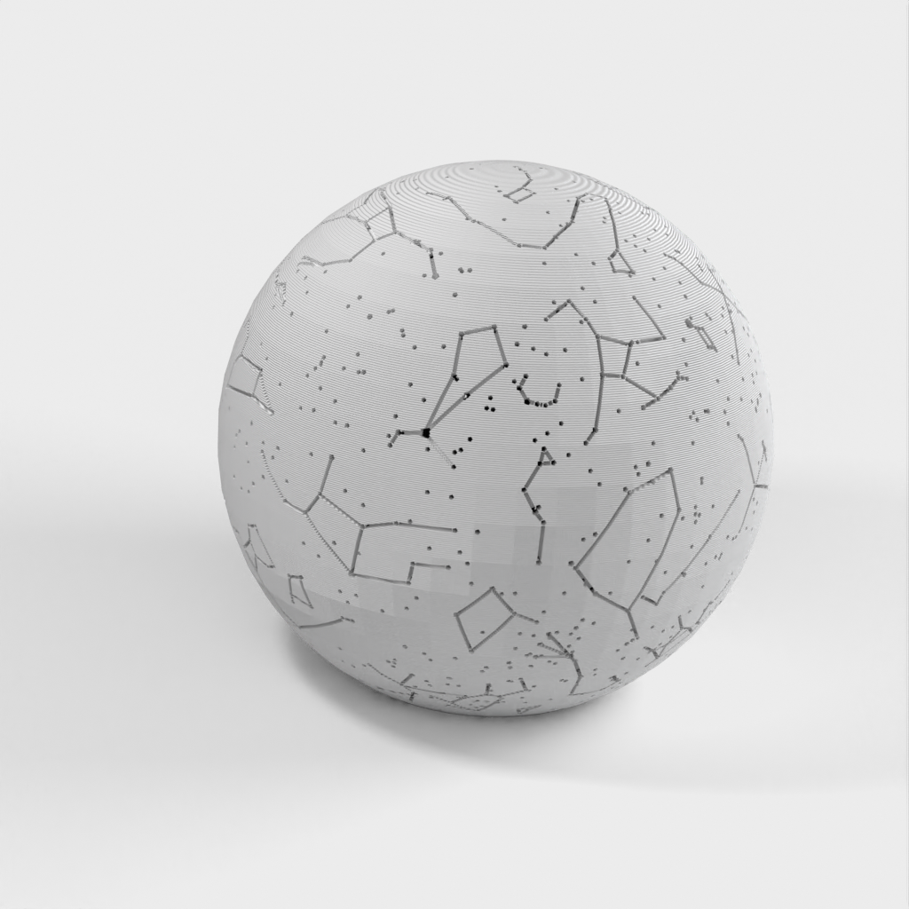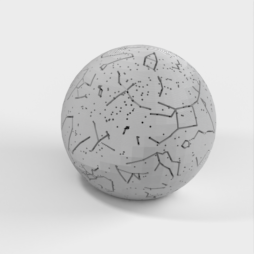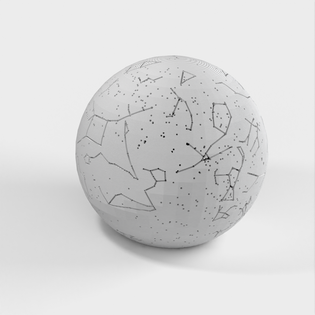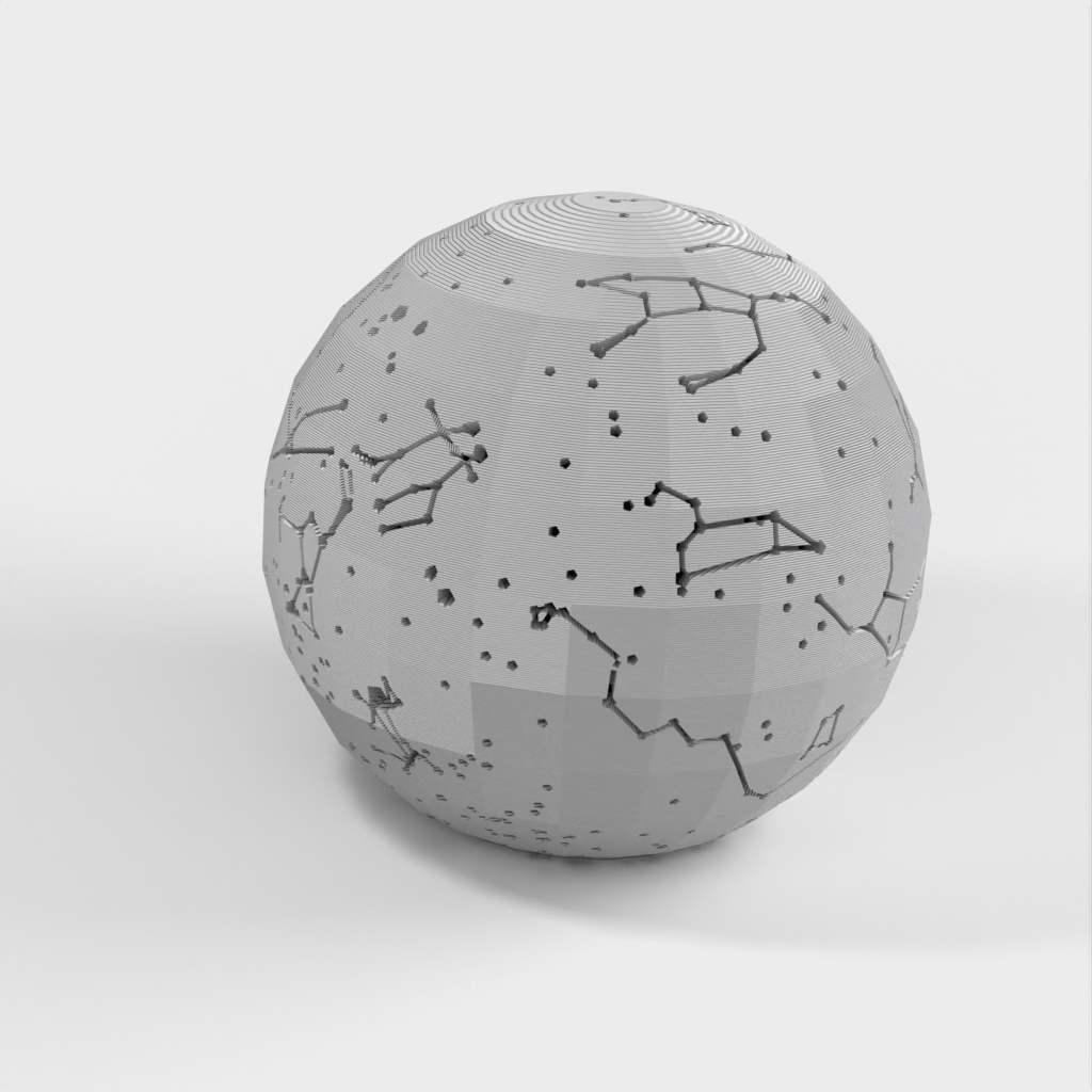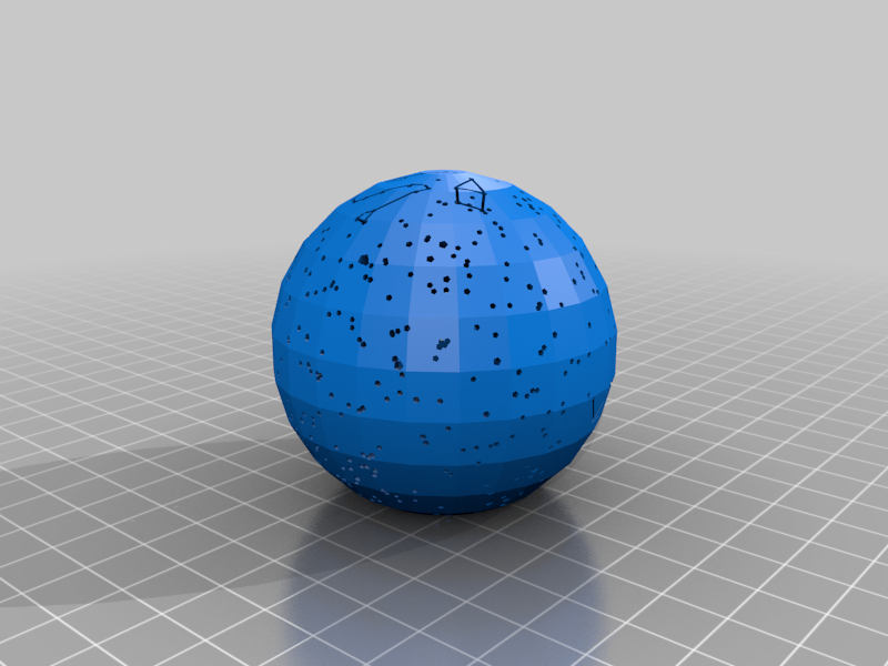 Dieses Produkt ist eine Erweiterung der Celestial Sphere-Modelle und kann STL-Dateien für eine Himmelssphäre generieren. Mit Openscad können Sie viele Parameter ändern und ein 3D-Modell der Himmelssphäre erstellen, das mehr als 1700 der hellsten Sterne und bis zu 50 Sternbilder umfassen kann. Das Modell enthält auch Pläne für eine äquatoriale Montierung, einschließlich der Möglichkeit einer LED-Beleuchtung im Inneren der Kugel.