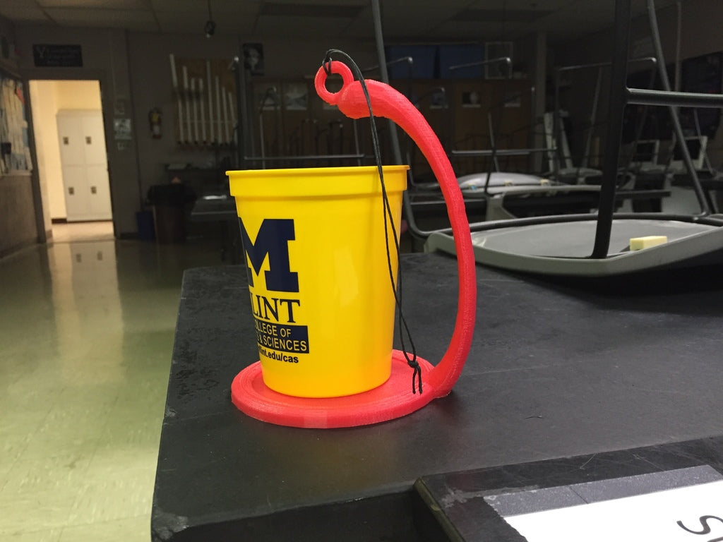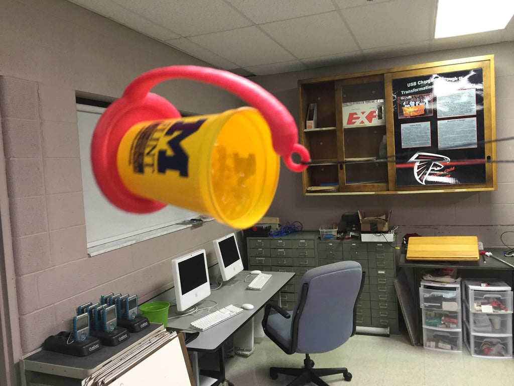 Der Zentripetalkraft-Demonstrator ist eine großartige Möglichkeit, die Prinzipien der Physik und Technik zu veranschaulichen. Es ist so konzipiert, dass es in eine Standard-Kaffeetasse (83 mm Durchmesser, 110 mm Höhe) passt und durch Hin- und Herschwenken mit einer vollen Tasse Wasser oder Kaffee verwendet werden kann, ohne dass die Gefahr besteht, dass etwas verschüttet wird. Mit etwas Übung können Sie diese in großen vertikalen Kreisen oder sogar in horizontalen Kreisen über Ihrem Kopf schwingen. Es wird darauf hingewiesen, dass Sie eine Schnur oder einen Riemen an den Ring binden müssen.