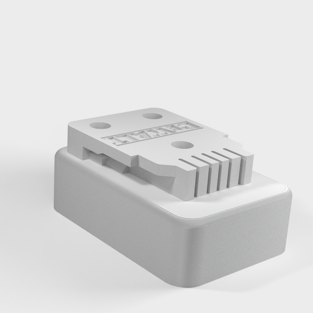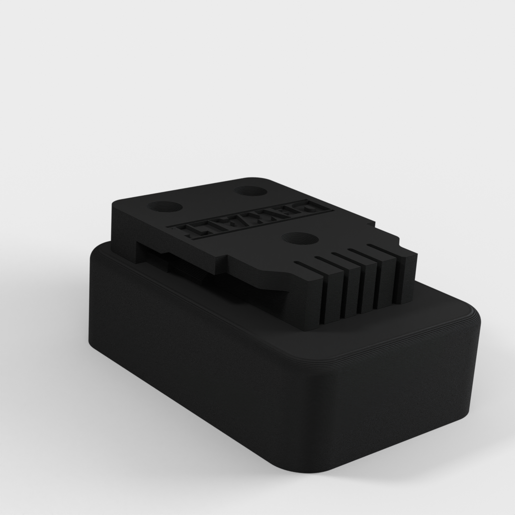 Dies ist ein einfacher DeWalt-Werkzeughalter für Bohrer/Schlagschrauber zum Aufhängen unter einem Regal oder einer Arbeitsplatte, mit ausreichend Platz für den Haken, der normalerweise an Bohrern/Schlagschraubern usw. angebracht ist.
