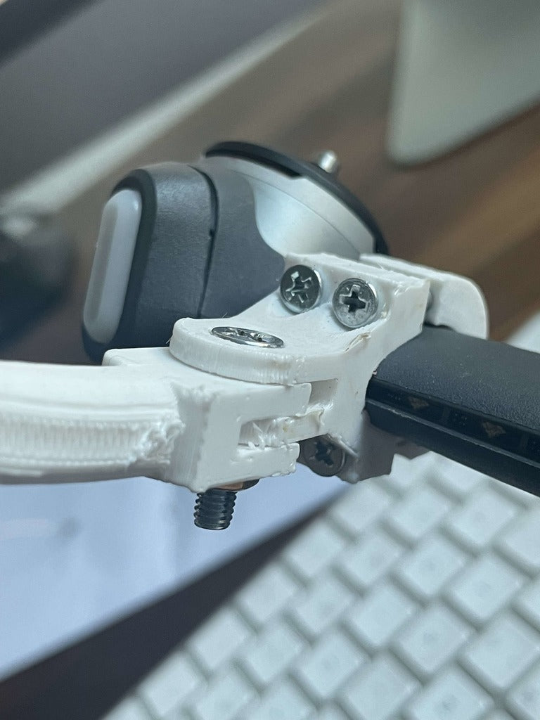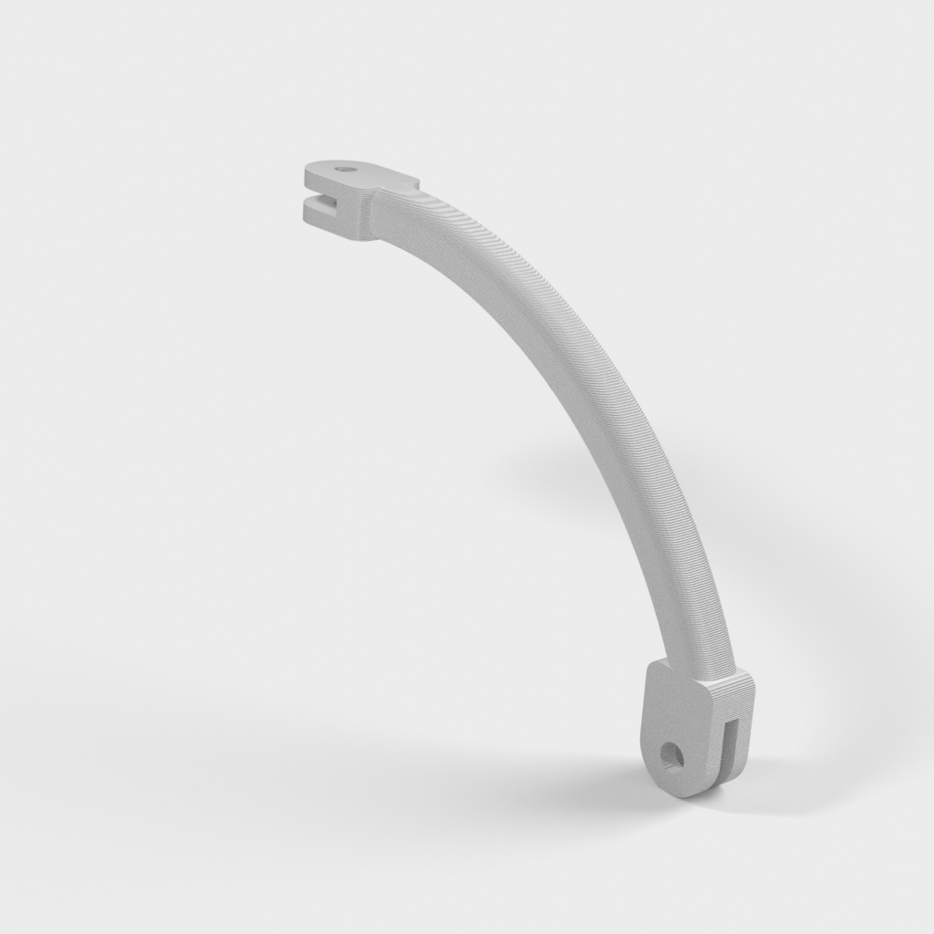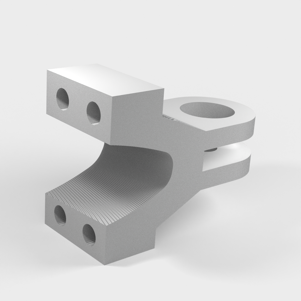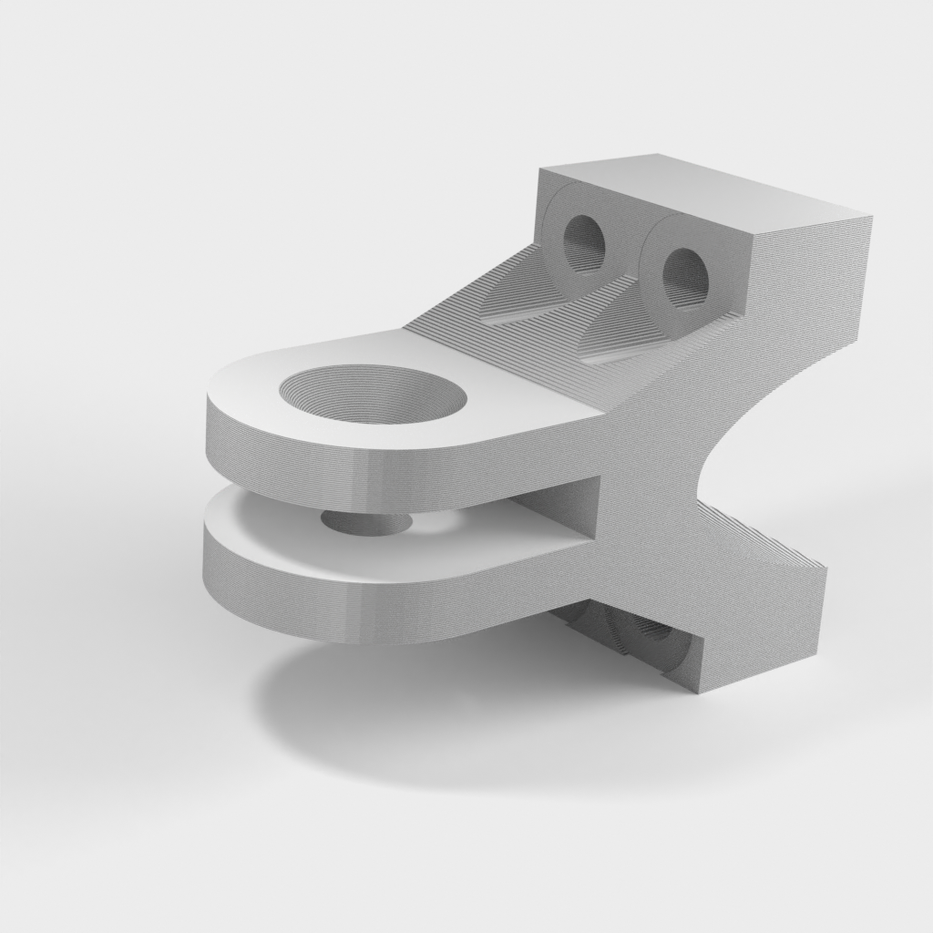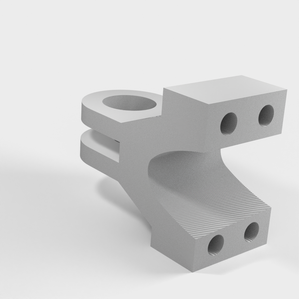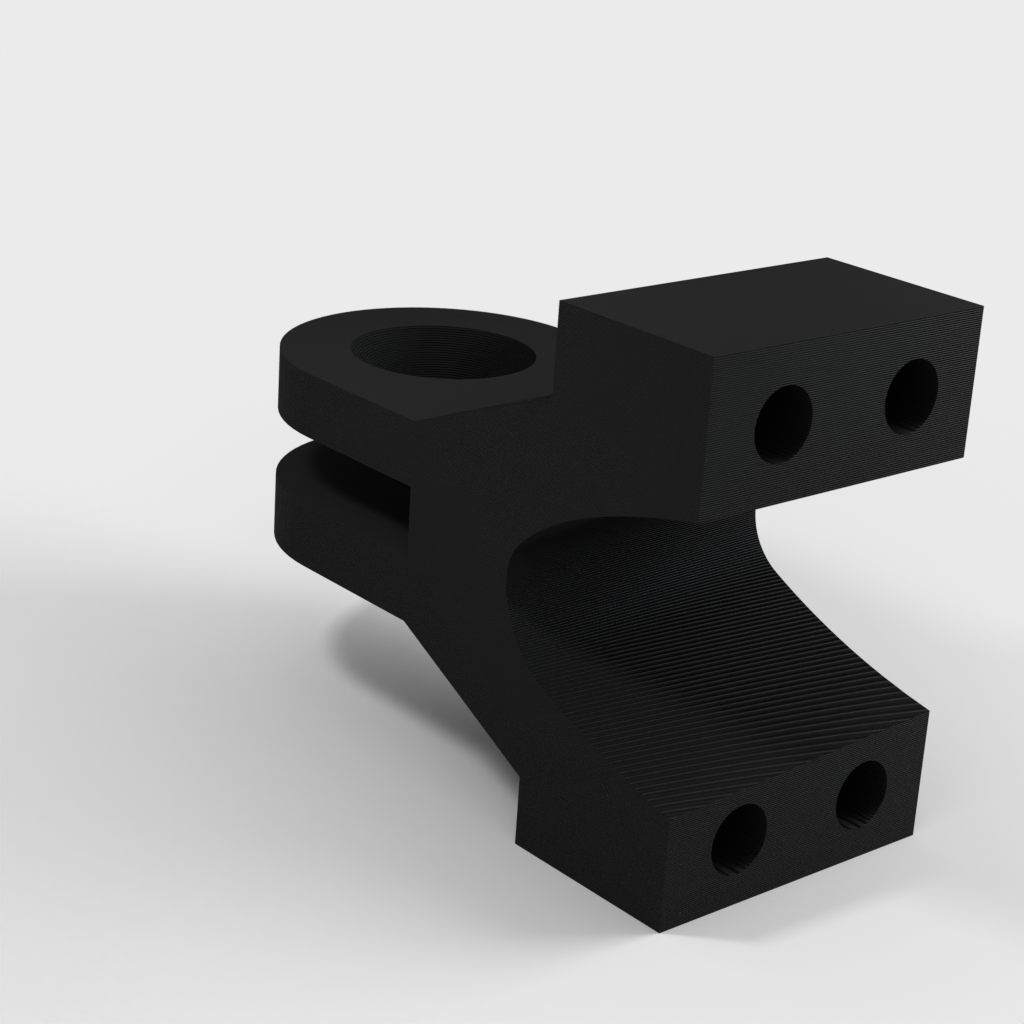 Das Armteil (mount-3.stl) muss mit einer Heißluftpistole oder einem Fön erhitzt werden, damit es formbar wird und die Kamera bestmöglich positioniert werden kann. Dadurch erhält der Arm eine bessere Stabilität, da sonst ein flacher Druck nicht möglich wäre und die Schichten nicht durchgängig wären.