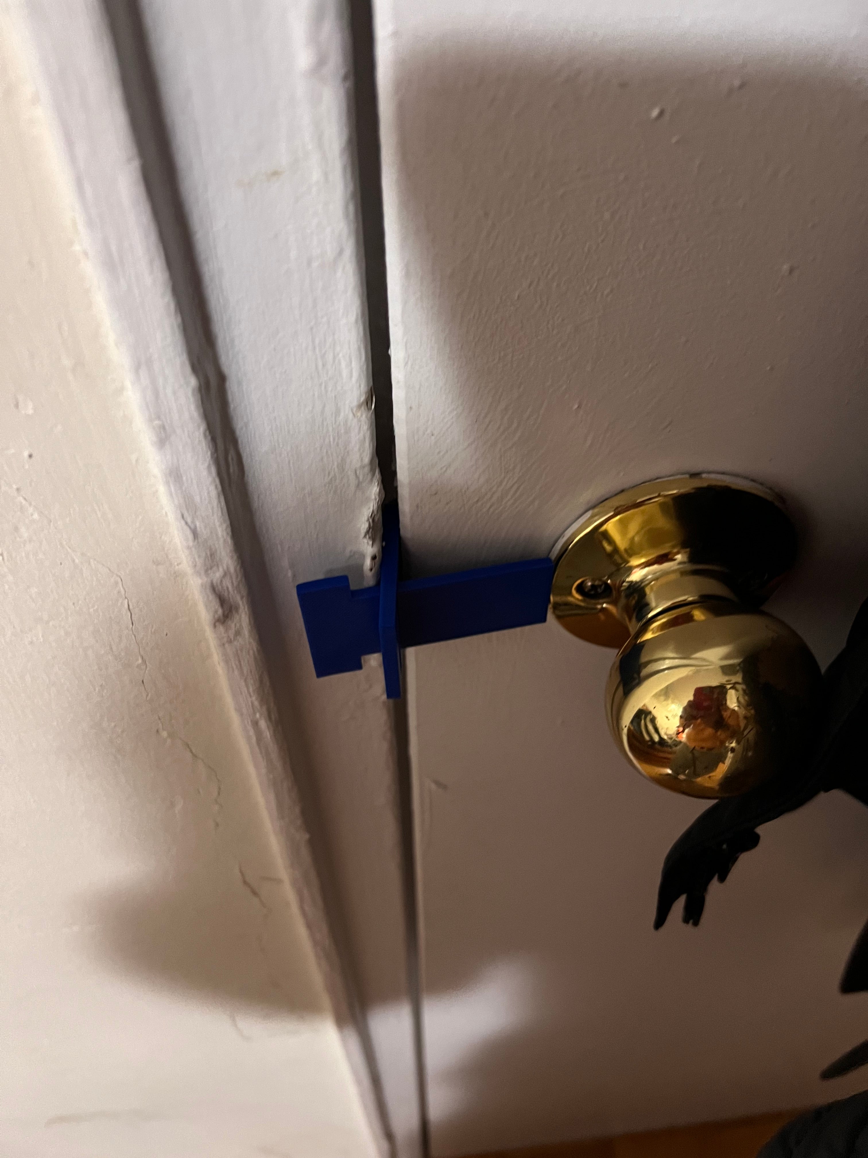 Türschloss/Türstopper aus Esun PLA. Dieser robuste Türstopper/-riegel lässt sich problemlos an jeder Tür montieren und hilft, die Tür an Ort und Stelle zu halten oder zu verriegeln. Passt auf alle gängigen Türtypen und macht Ihr Zuhause sicherer und funktionaler.