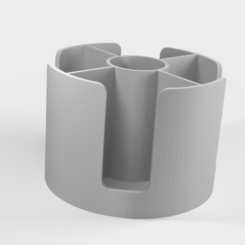 Dieser praktische Organizer ist ideal, um Ihre Fernbedienungen und Schreibutensilien an einem zentralen Ort aufzubewahren. Er sorgt für Ordnung auf Ihrem Schreibtisch oder in Ihrem Wohnzimmer, indem er diesen häufig genutzten Gegenständen einen eigenen Platz bietet. Sein schlichtes und funktionales Design reduziert Unordnung und erleichtert das Auffinden der gesuchten Gegenstände. Der Organizer ist eine funktionale Ergänzung für Ihr organisiertes Interieur und fügt sich harmonisch in die meisten Räume ein.