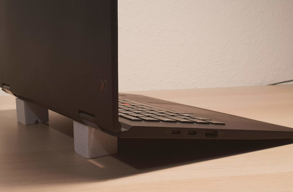Dies ist ein einfacher universeller Laptophalter, der einen Winkel von 10 Grad für Ihren Laptop bietet. Bei den meisten Laptops sollten zwei davon ausreichen, um einen guten Halt zu bieten. Die Größe ist ein Würfel mit einer Seitenlänge von 30 mm und die Höhe reicht aus, um etwa 20 cm vom Anfang Ihres Laptops entfernt zu sein.