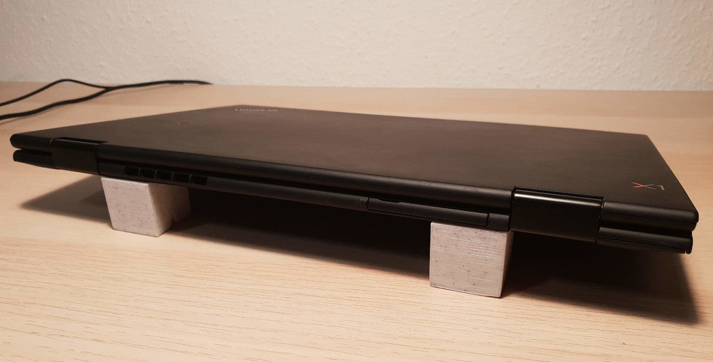 Dies ist ein einfacher universeller Laptopständer, der einen Laptopwinkel von 10 Grad bietet. Bei den meisten Laptops sollten zwei davon ausreichen, um eine gute Unterstützung zu bieten. Die Größe ist ein Würfel mit einer Größe von 30 mm, die Höhe ist hoch genug, um etwa 20 cm vom Anfang des Laptops entfernt zu sein.