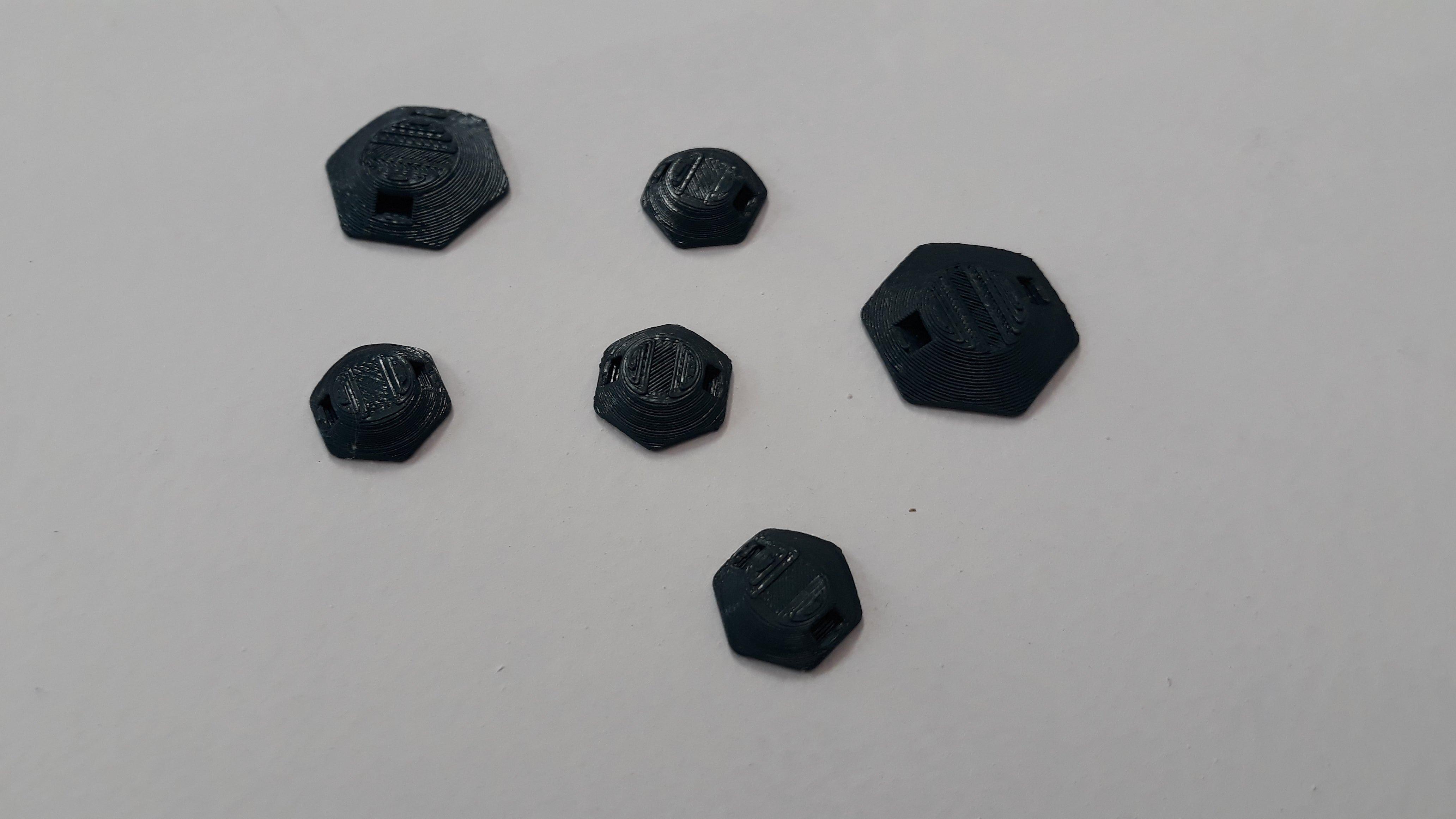Sechseckige Kabelklemmen zur Organisation von Kabeln und Rohren. Die Clips können von oben oder von der Seite eingeführt und mit doppelseitigem Klebeband, Kleber, Heißkleber usw. befestigt werden. Erhältlich in zwei verschiedenen Größen (klein, groß) und für Kabelbinder unterschiedlicher Größe. Sie können auf jedes Material gedruckt werden, das Ihren Anforderungen entspricht, und es können viele Einheiten gleichzeitig gedruckt werden. Der Preis pro Die Einheit variiert je nach Material und Größe zwischen 0,1 und 0,2 €/$.