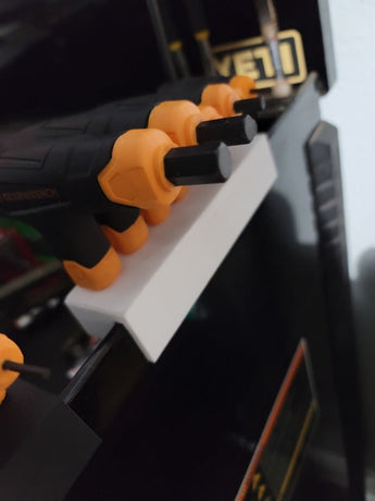 Dieser Halter dient zur effizienten Aufbewahrung Ihrer T-Griff-Inbusschlüssel und lässt sich einfach an der Seite Ihres Werkzeugkastens befestigen. So bleiben Ihre Werkzeuge übersichtlich und griffbereit, sodass Sie bei der Arbeit schnell den richtigen Inbusschlüssel finden. Der Halter schützt Ihre Inbusschlüssel vor Abnutzung und minimiert das Risiko, sie bei Nichtgebrauch zu verlieren. Er bietet eine praktische und platzsparende Lösung für Profis und Hobbybastler, die Ordnung in ihrem Werkzeugarsenal halten möchten.
