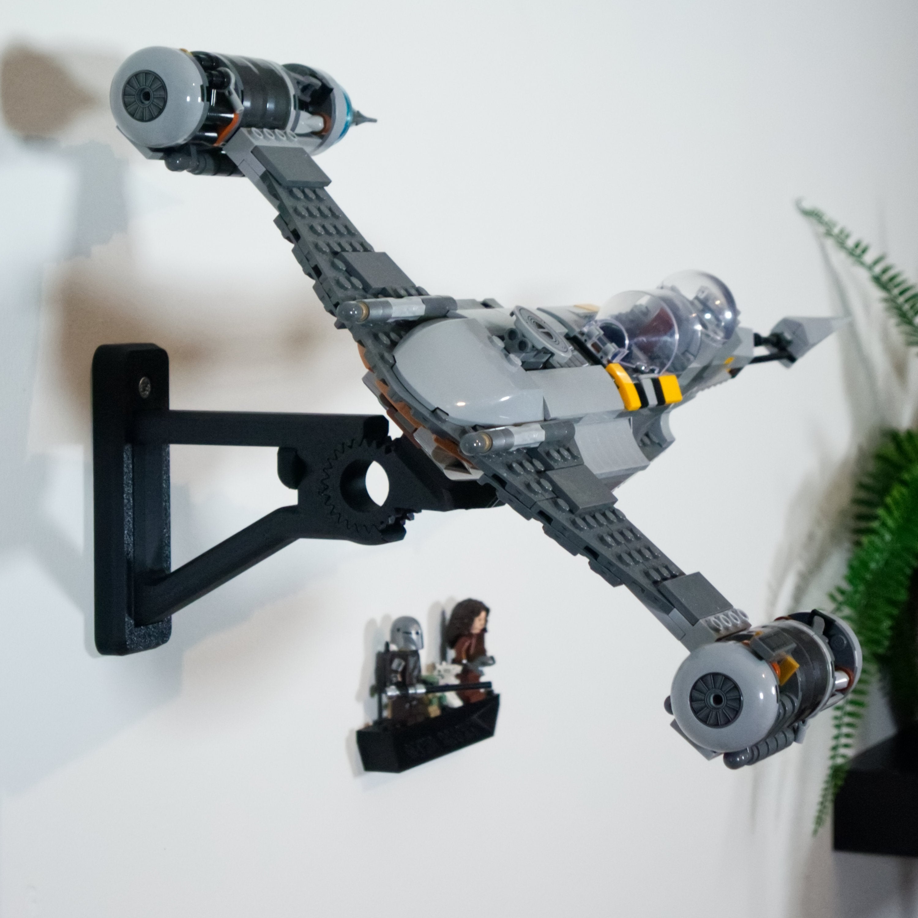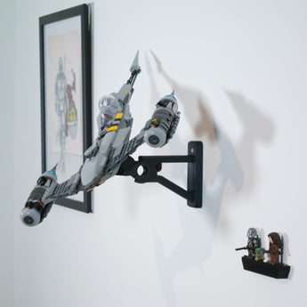 Dette justerbare vægbeslag er designet specifikt til LEGO sæt 75325 og gør det muligt at udstille din N-1 Starfighter i forskellige vinkler. Beslaget sikrer nem adgang til modellen og inkluderer en separat holder til minifigurer, så hele sættet kan præsenteres samlet på væggen.