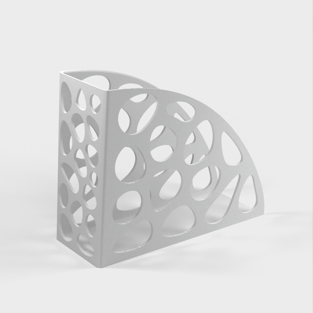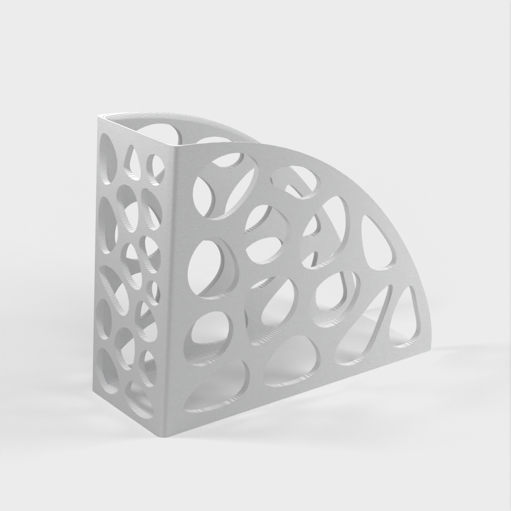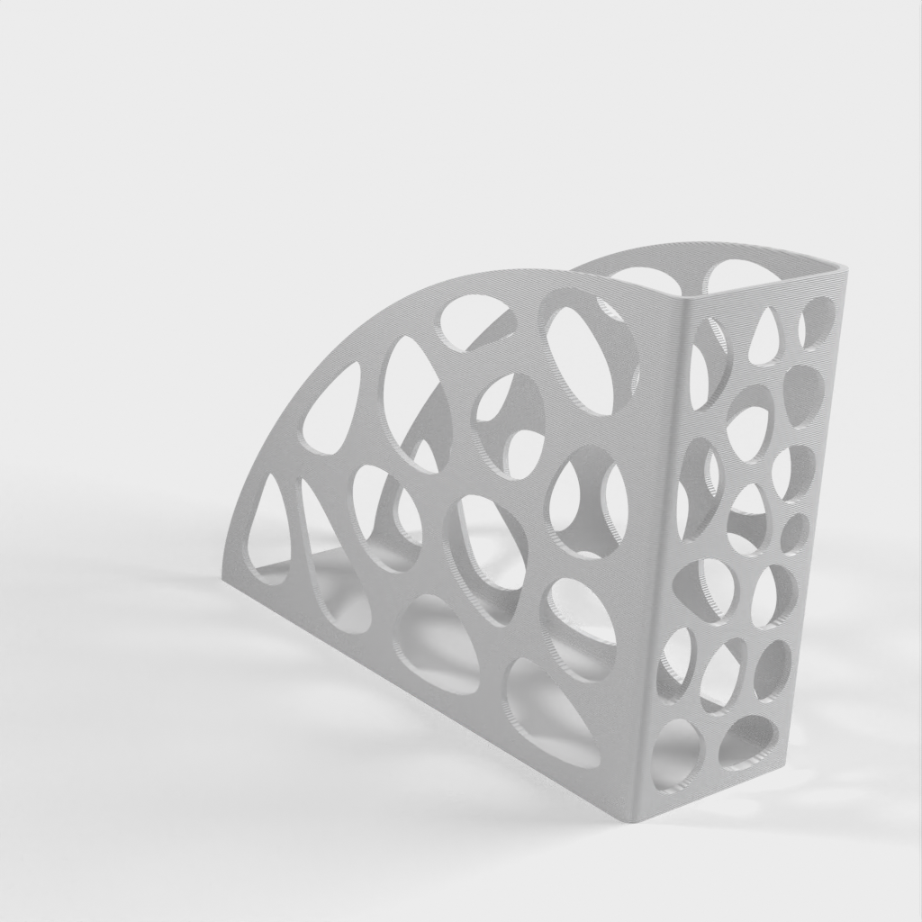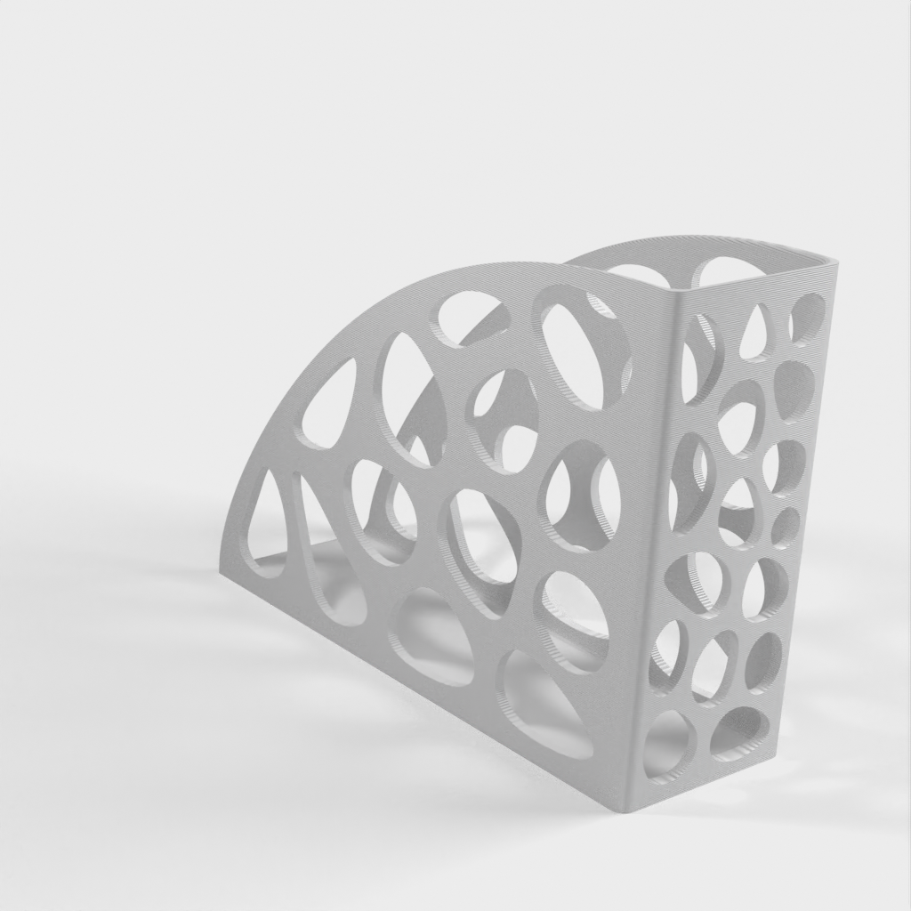 Dies ist ein einfacher Kaffeefilterhalter, der mit einem Voronoi-Diagramm hergestellt wurde. Sein Design erleichtert das Halten und Organisieren Ihrer Kaffeefilter in Ihrer Küche. Das Produkt ist robust und dennoch leicht, was es einfach macht, es bei Bedarf herumzubewegen.