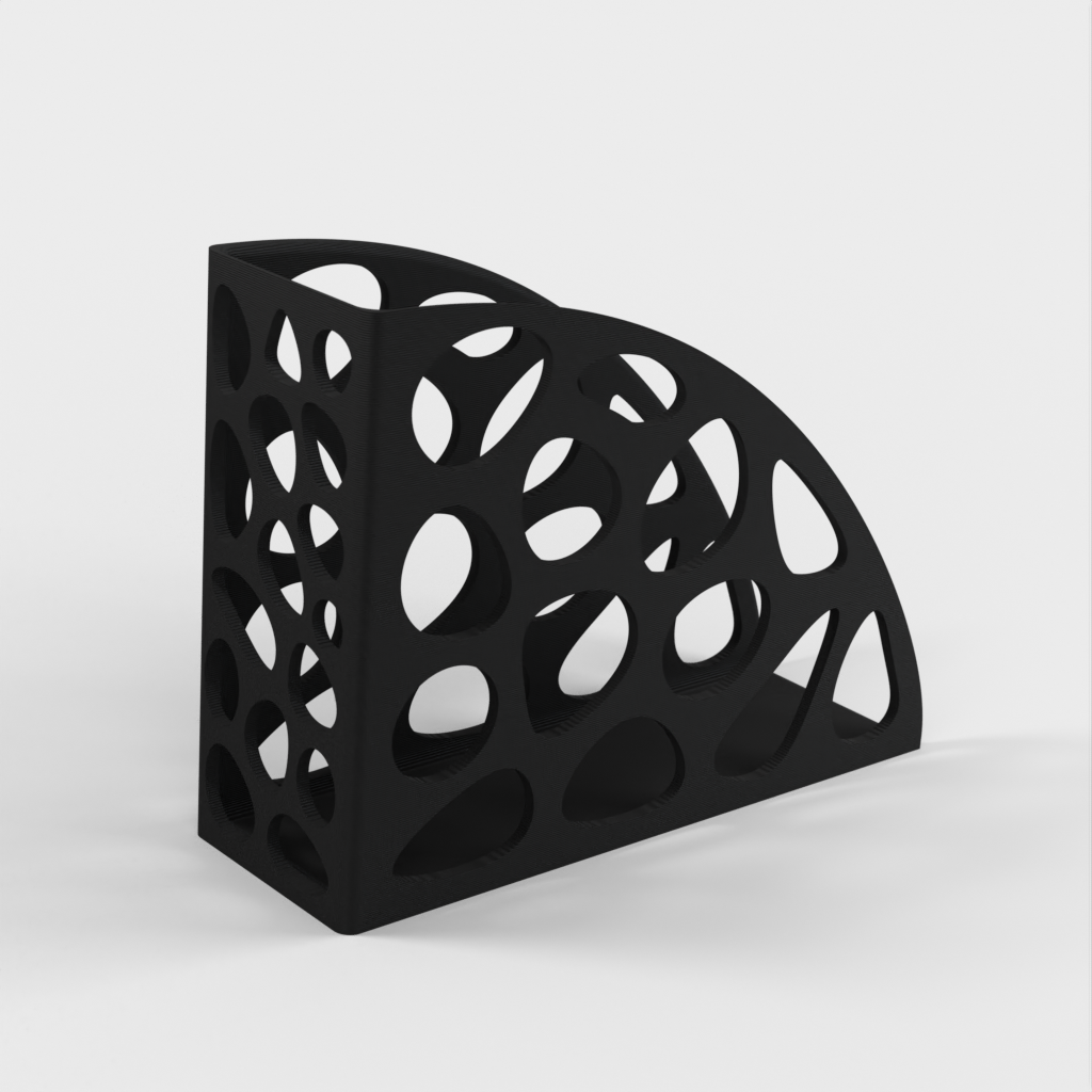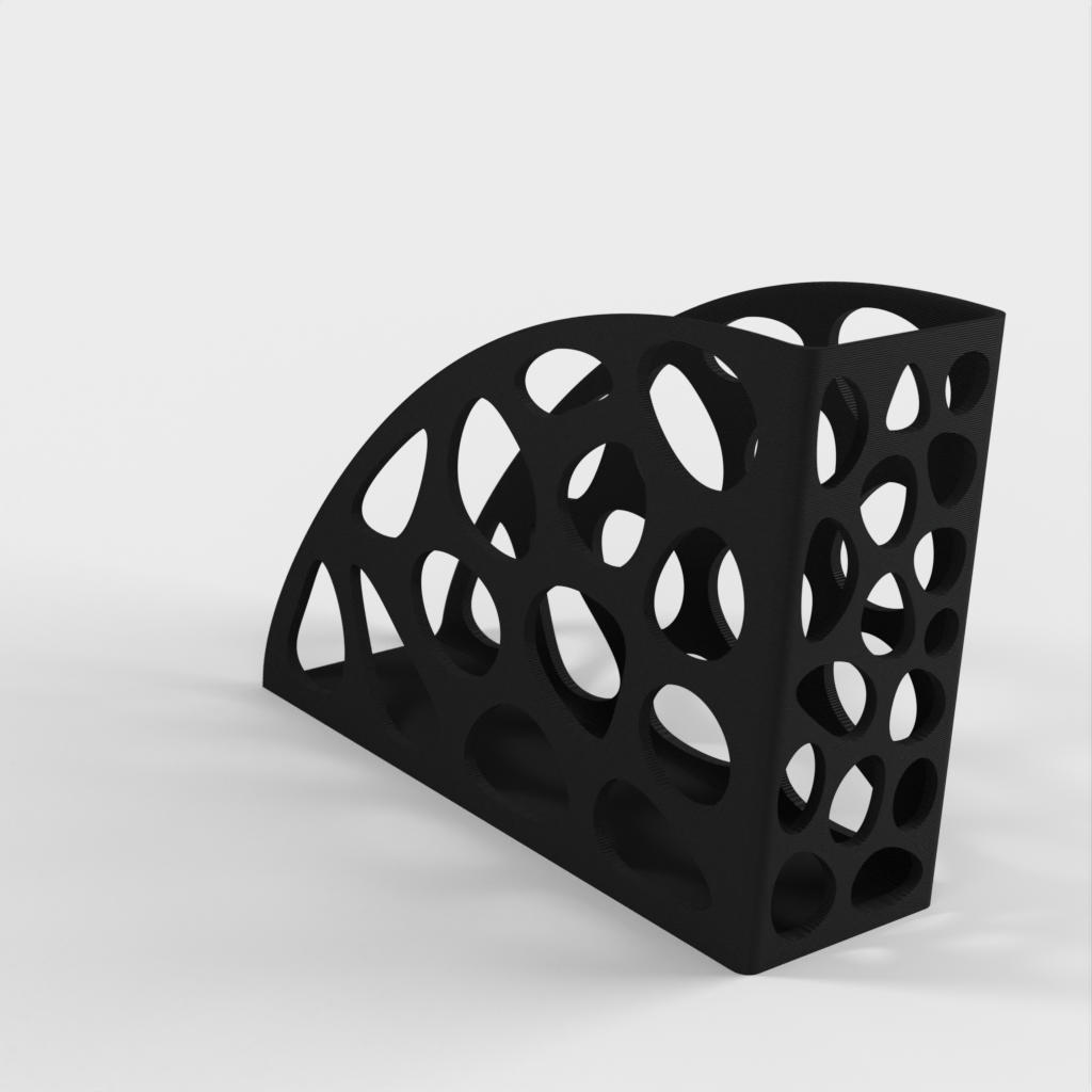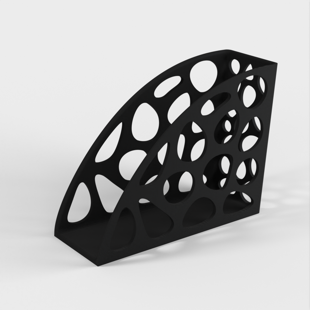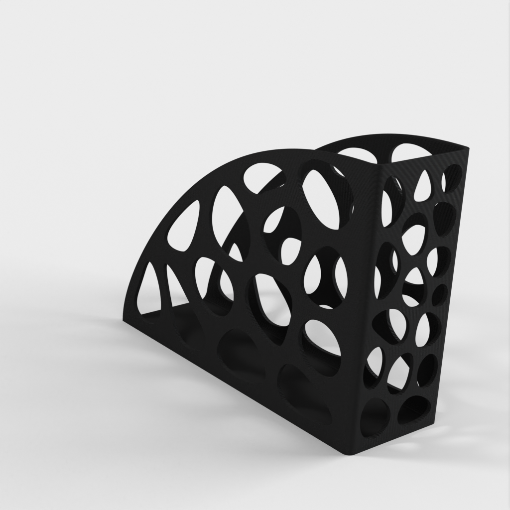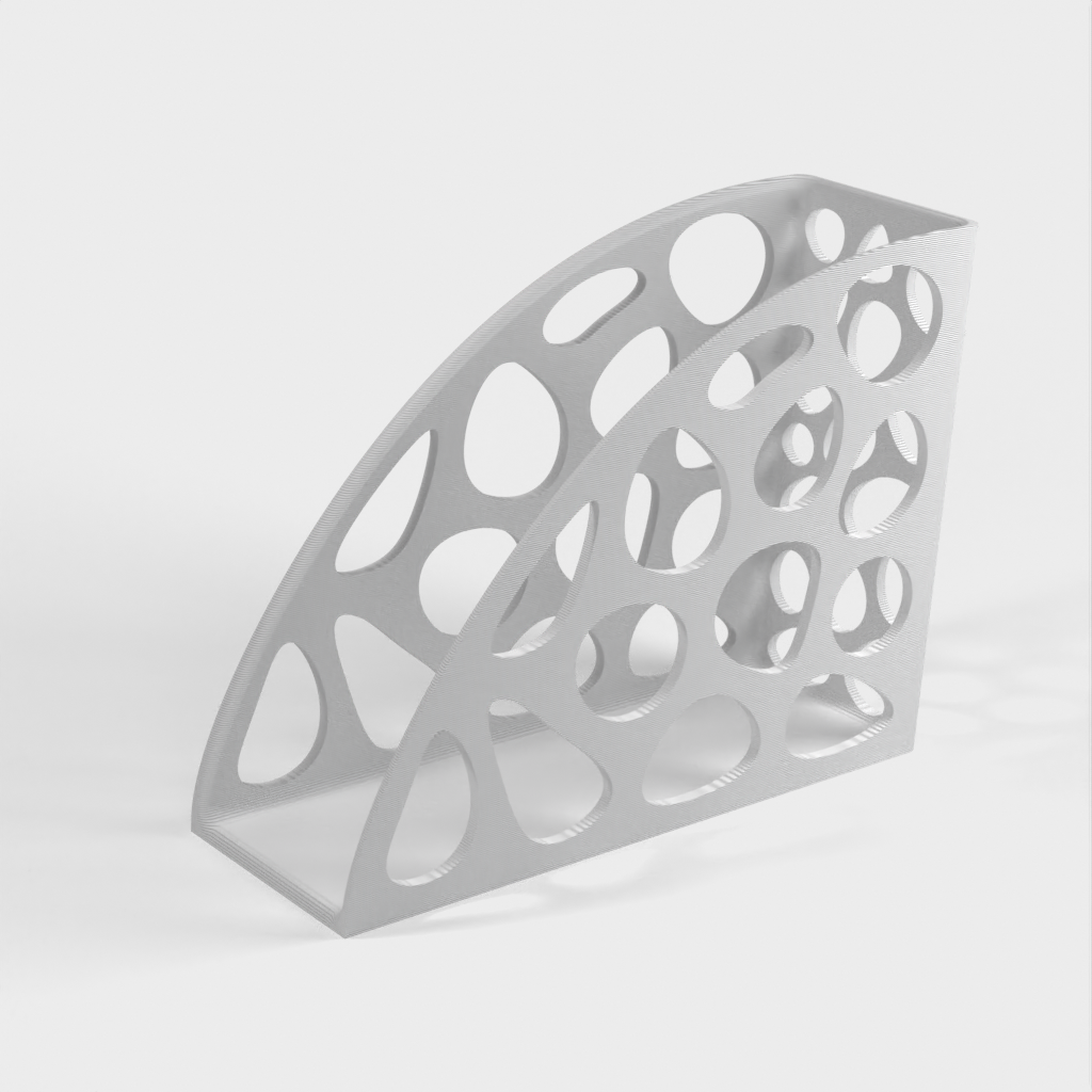 Dies ist ein einfacher Kaffeefilterhalter, der mit einem Voronoi-Diagramm hergestellt wurde. Sein Design erleichtert das Halten und Organisieren Ihrer Kaffeefilter in Ihrer Küche. Das Produkt ist robust und dennoch leicht, was es einfach macht, es bei Bedarf herumzubewegen.