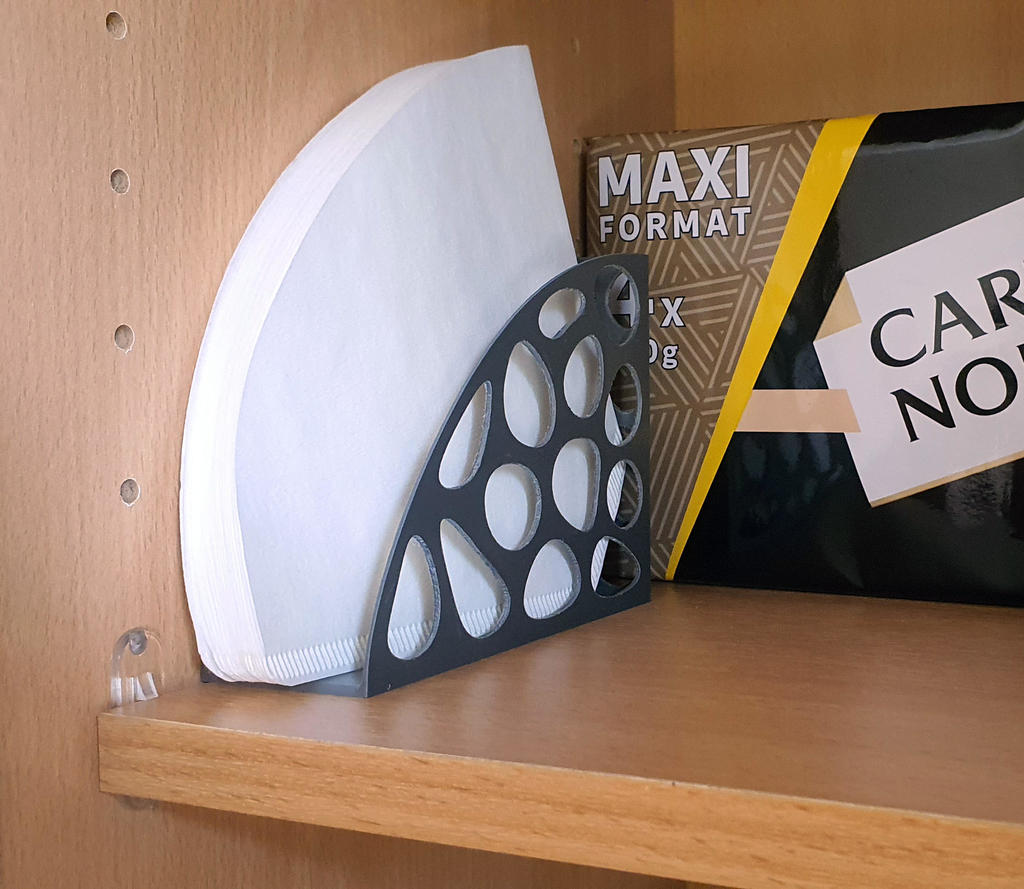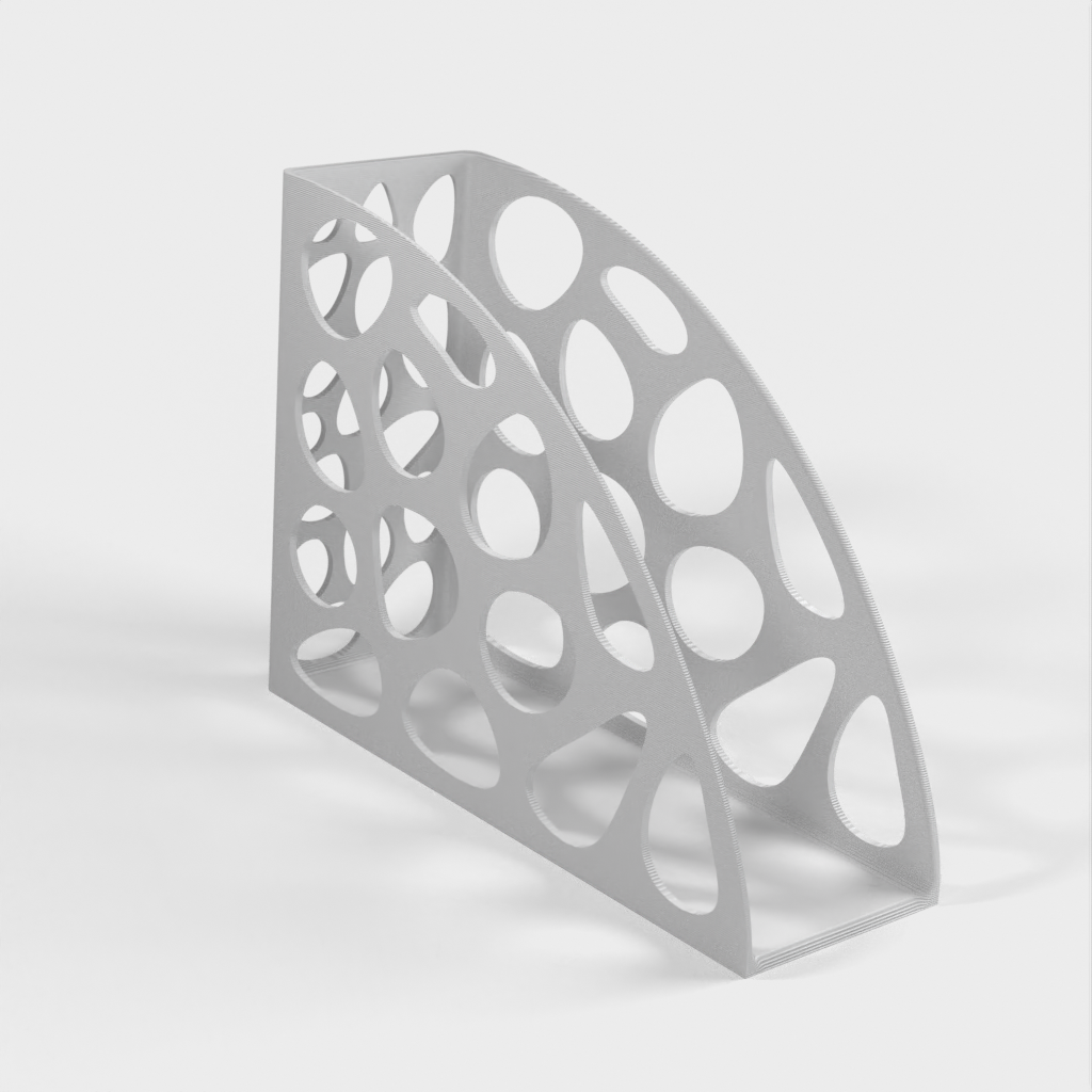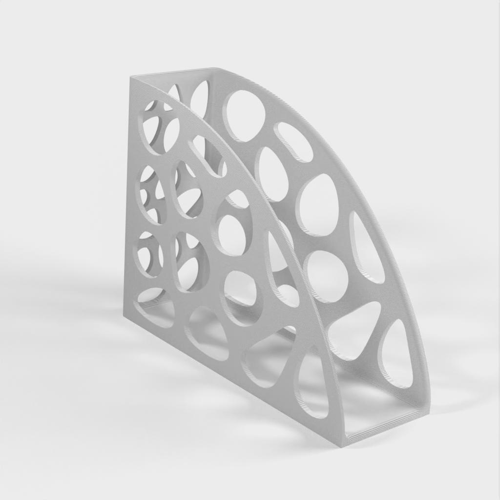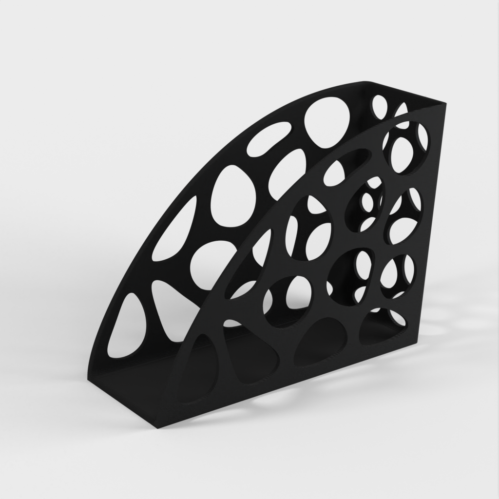 Dies ist ein einfacher Kaffeefilterhalter, der mit einem Voronoi-Diagramm hergestellt wurde. Sein Design erleichtert das Halten und Organisieren Ihrer Kaffeefilter in Ihrer Küche. Das Produkt ist robust und dennoch leicht, was es einfach macht, es bei Bedarf herumzubewegen.