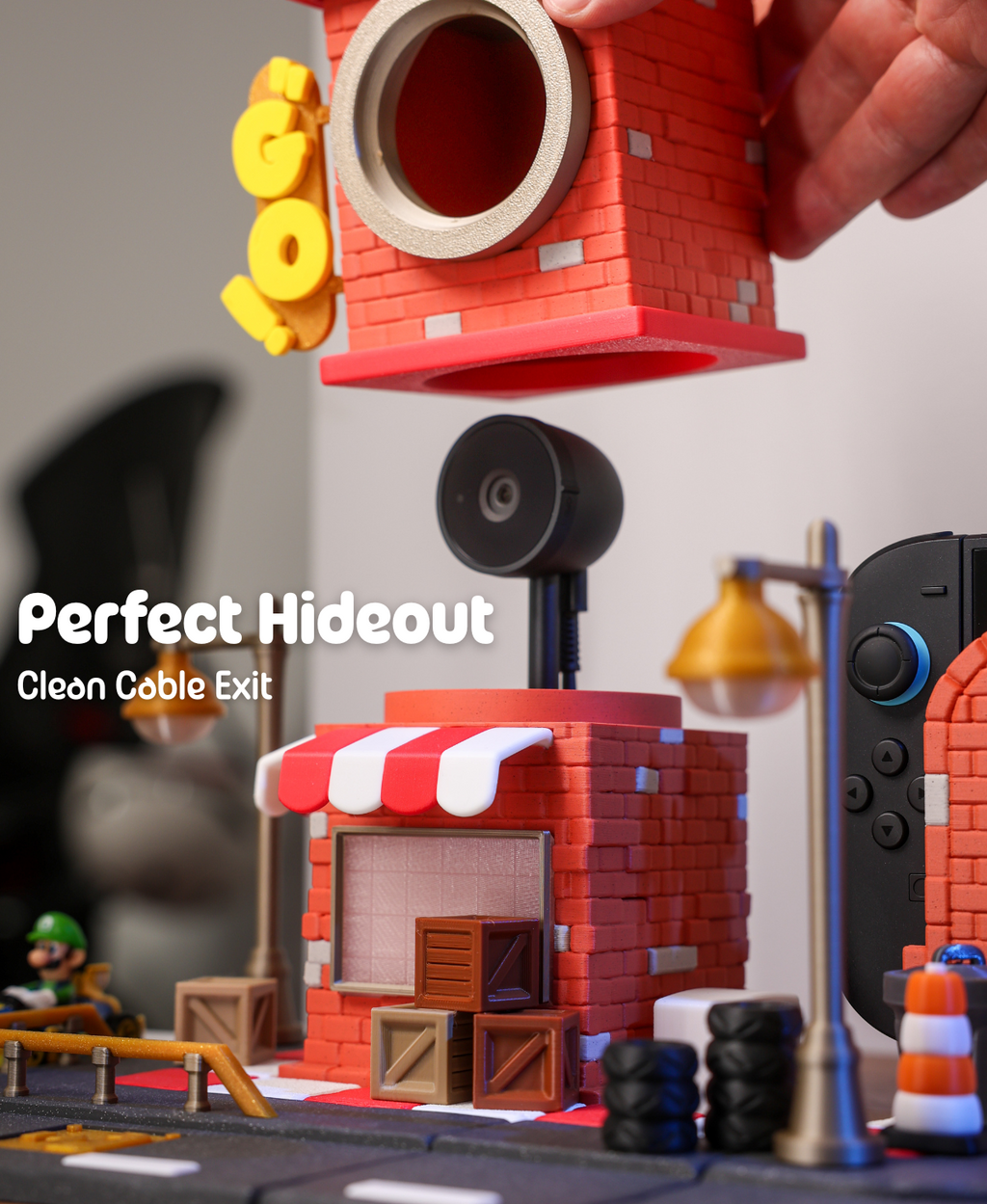Schützen Sie Ihre Privatsphäre stilvoll und sorgen Sie für ein einheitliches Setup mit dem Camera Tower , einem verspielten und urbanen Wandmontagesystem für die offizielle Nintendo Switch 2-Kamera . Dieses Modell ist Teil der Turbo District-Kollektion – einem kompletten 3D-druckbaren Setup, inspiriert von der aufregenden Welt des Gokart-Rennens und im Miniatur-New York-Stil nachgebildet.