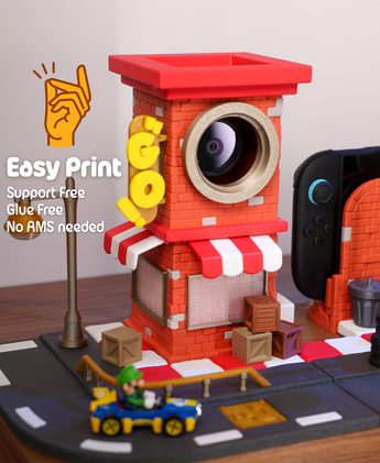 Dieser Kameraturm, Teil der Turbo District-Kollektion, sichert Ihre Nintendo Switch 2 Kamera. Sie können die Datenschutzfunktion einfach aktivieren, indem Sie den zweiten Stock des Turms drehen und die Kamera verbergen. Er verfügt über ein diskretes Kabelmanagement und eine obere Plattform, die sich ideal eignet, um eine Amiibo-Figur in Ihrem Gaming-Setup zu präsentieren.