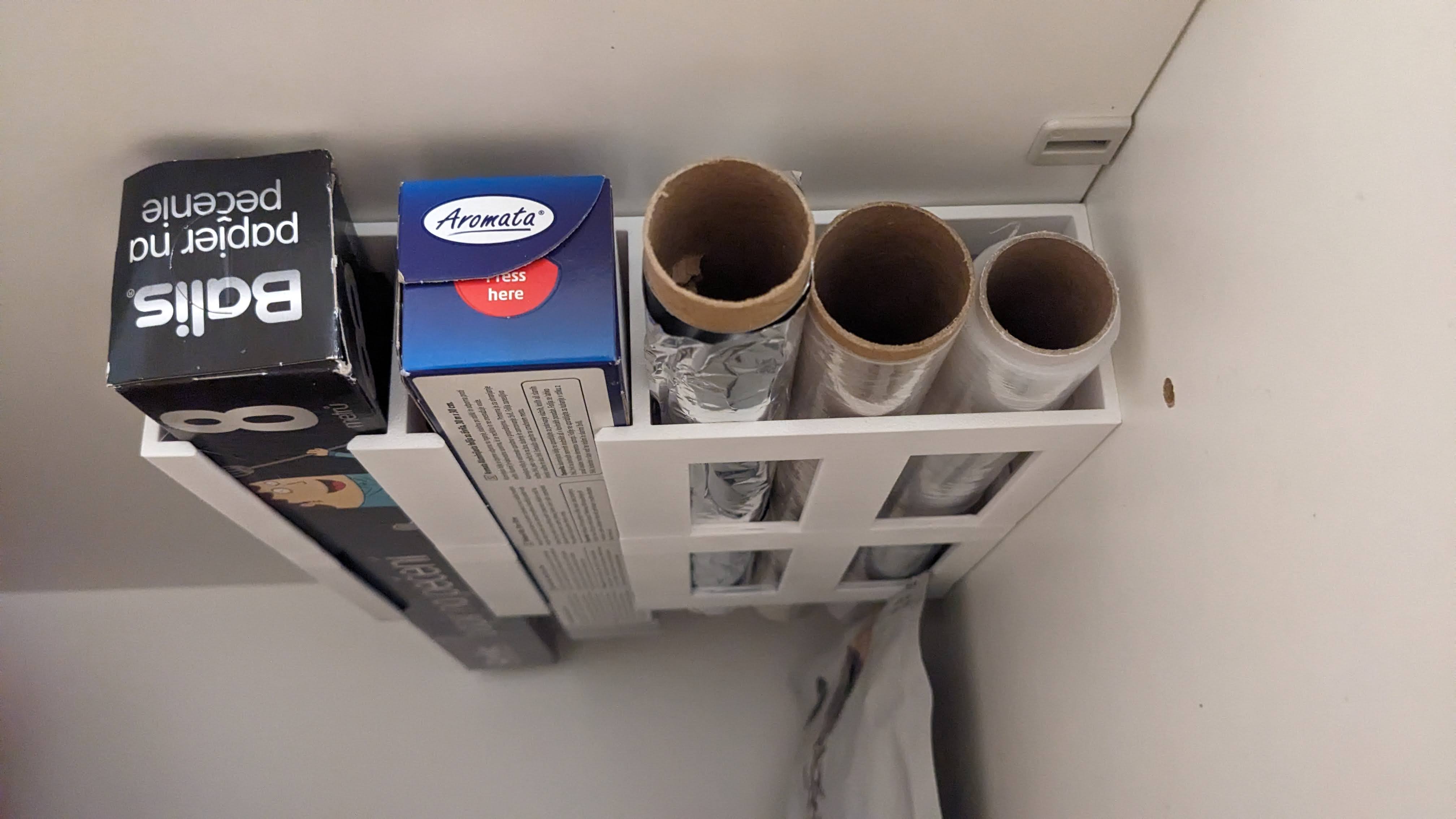 - Hält Alu- und Frischhaltefolienrollen geordnet