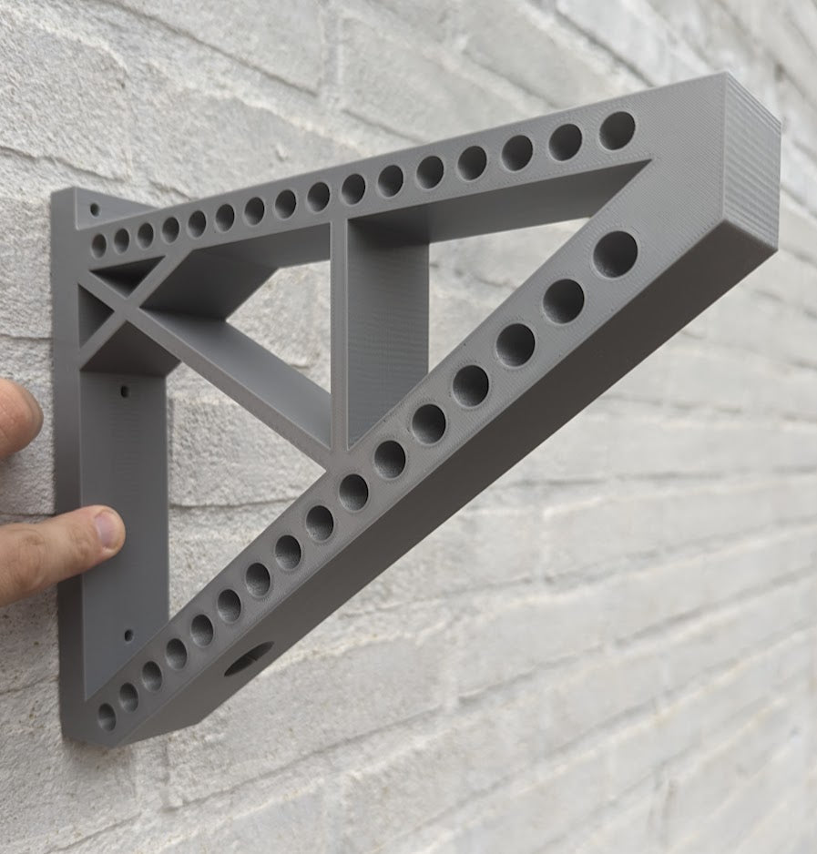 Sie können auch bedruckte Regalhalterungen hinzufügen, um Ihren Regalen stabilen Halt zu verleihen. Dieser Wandanker ist ideal, um in jedem Raum, vom Wohnzimmer bis zur Werkstatt, Ordnung zu schaffen. Er hält alles von Büchern und Aufbewahrungsboxen bis hin zu Ihren Lieblingsdekoartikeln und Dekorationen. Das multifunktionale Design mit zusätzlichen Löchern ermöglicht auch spätere Anpassungen, z. B. das Anbringen von Seilen an der Decke, um längere Gegenstände wie Stangen oder Bretter zu sichern.