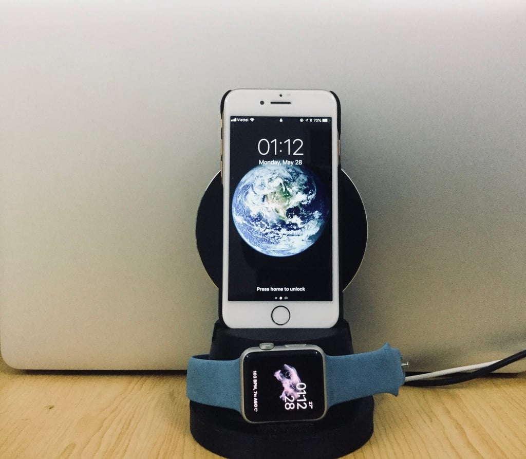 Ladestation für iPhone und Apple Watch mit Unterstützung für kabelgebundenes und kabelloses Laden