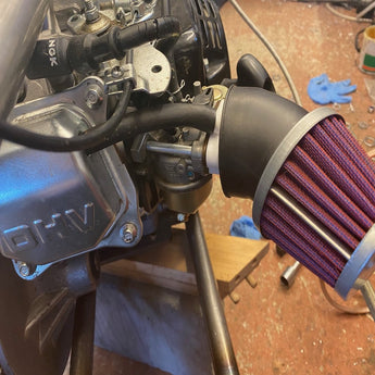 Dieser aktualisierte Luftfilteradapter wurde für Honda GX160, GX200, Predator und ähnliche Klonmotoren entwickelt und bietet eine praktische Lösung für die Installation eines Standard-Konus- oder Performance-Luftfilters. Der Adapter ermöglicht das Entfernen des originalen Luftfilterkastens und eignet sich für alle, die den Motorluftstrom optimieren möchten.