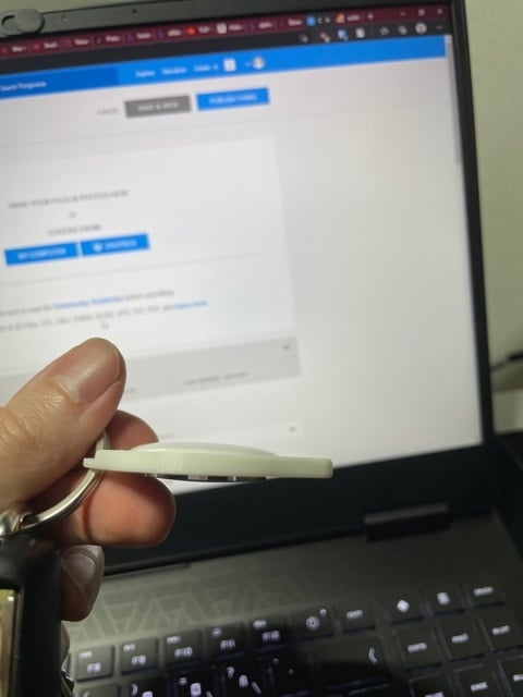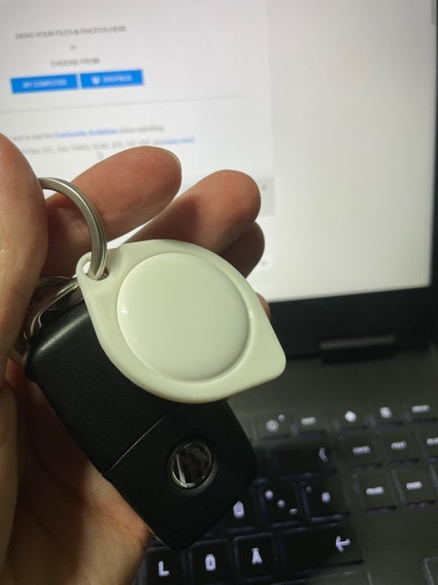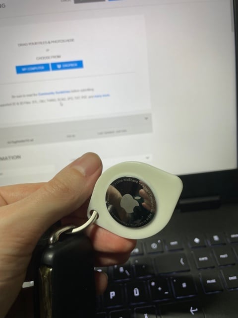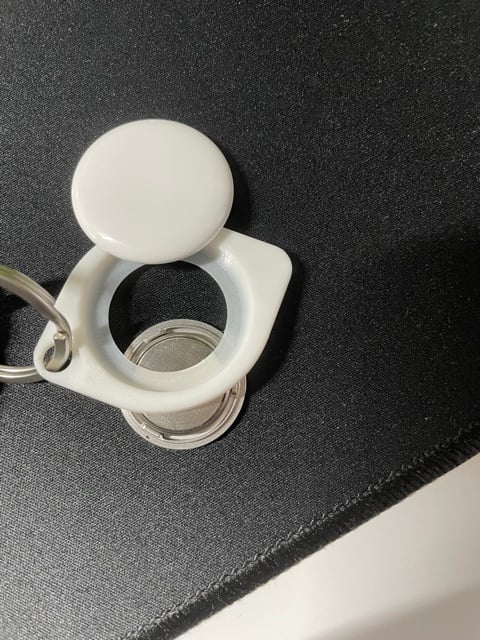Minimalistischer Schlüsselanhänger für AirTag. Platzieren Sie diesen Schlüsselanhänger zwischen den beiden Hälften des AirTags, wenn Sie ihn schließen.