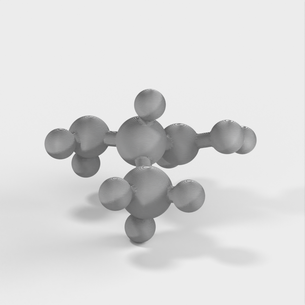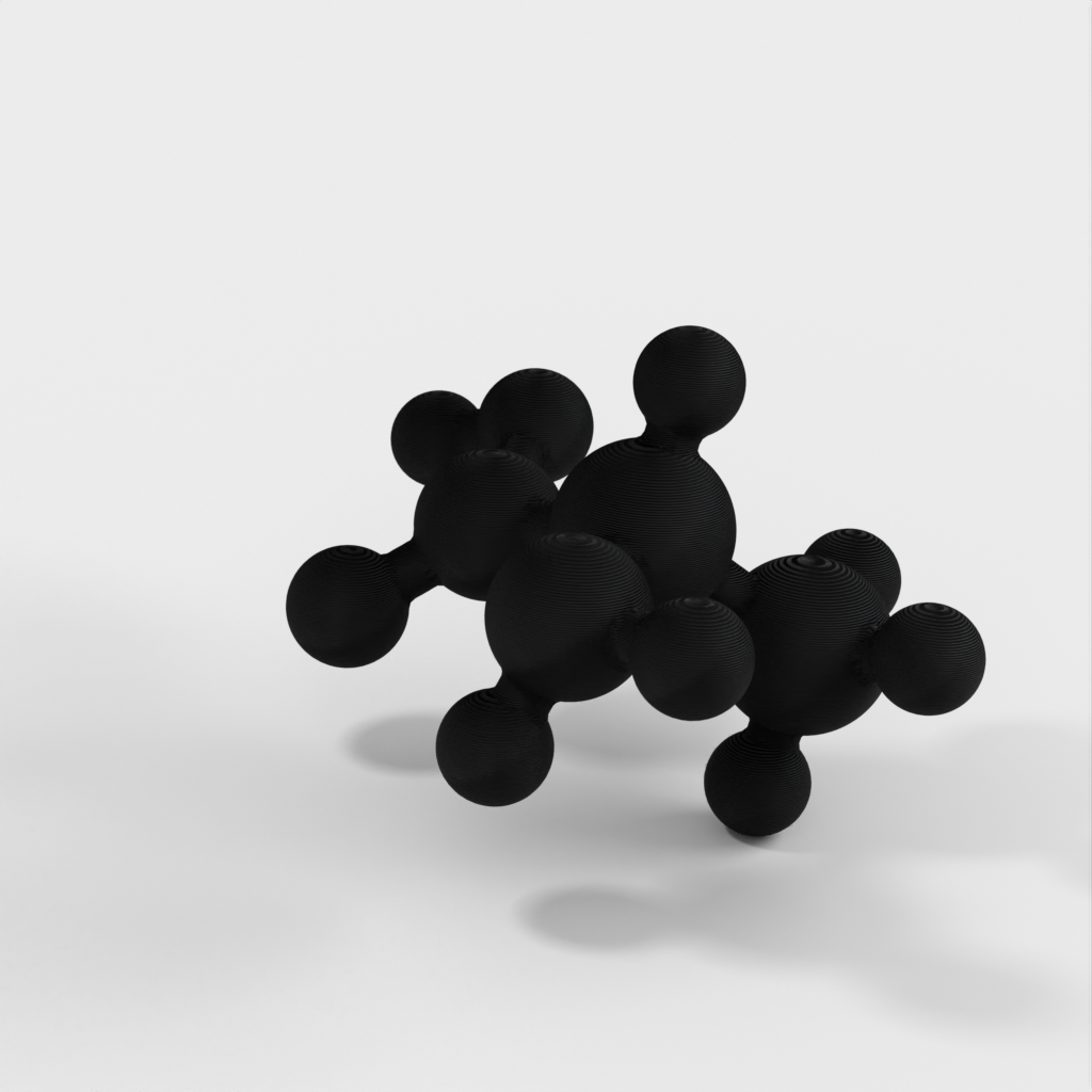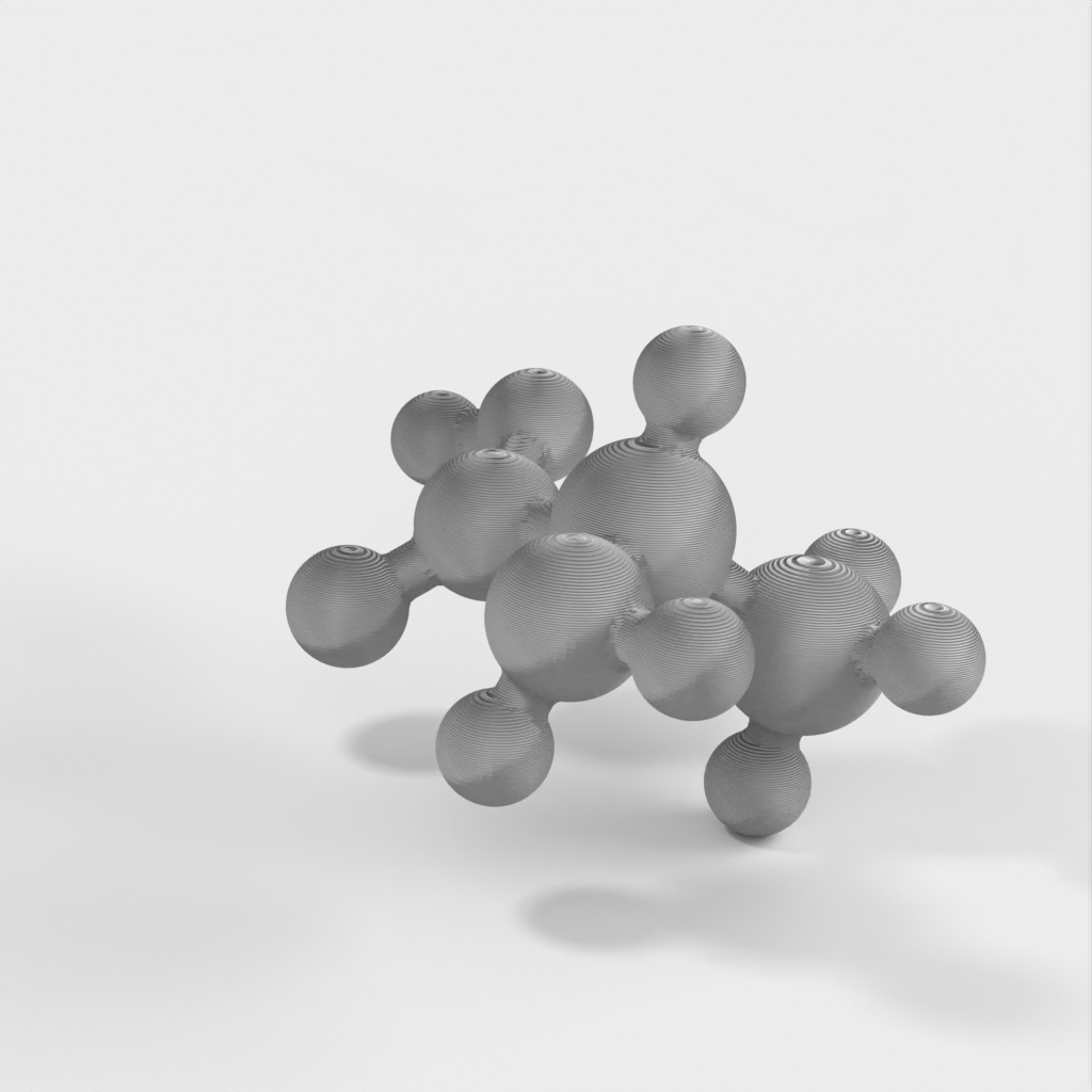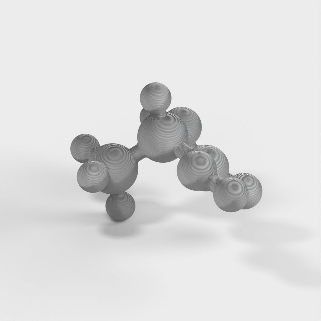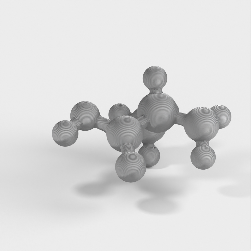 Das Modell ist für den großen Maßstab konzipiert und verfügt daher über eine erhebliche Anzahl von Dreiecken. Jedes Atom hat die richtigen Proportionen und die richtige Bindung zu den anderen im Molekül.