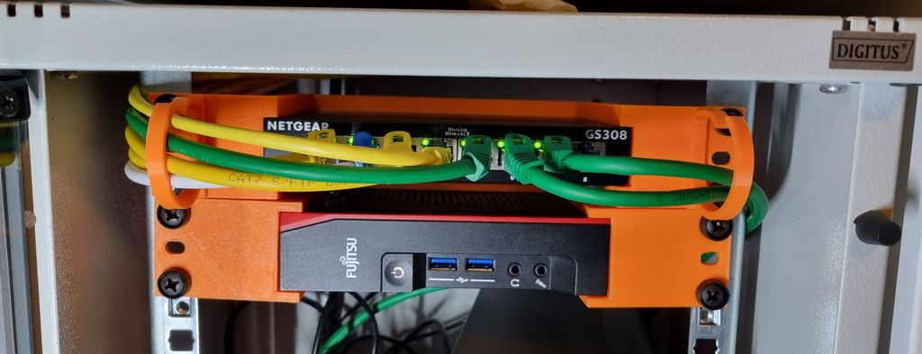 Diese Halterung dient zur Montage eines Netgear GS308v3-Switches in einem 10-Zoll-Rack-Gehäuse. Die Halterung verfügt auf beiden Seiten über Kabelführungsclips, sodass Ihre Installation organisiert und ordentlich bleibt.