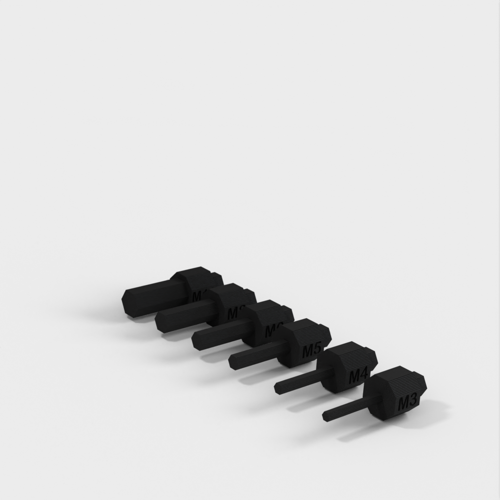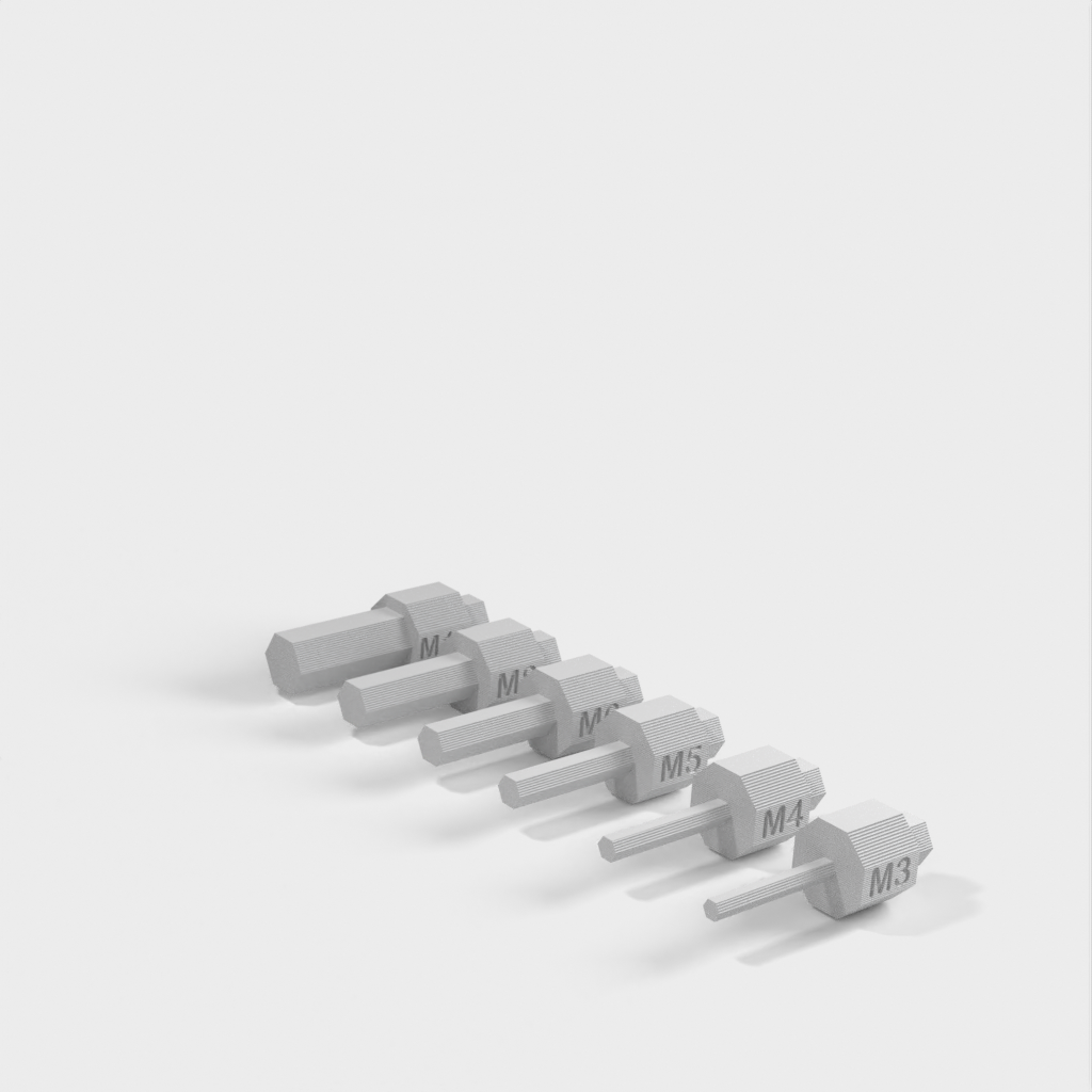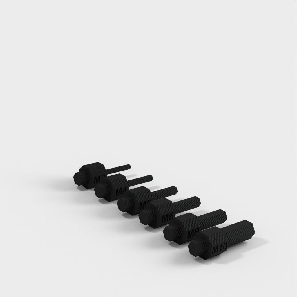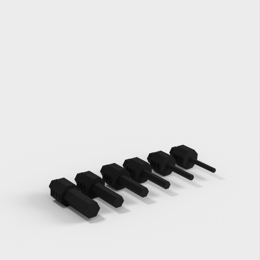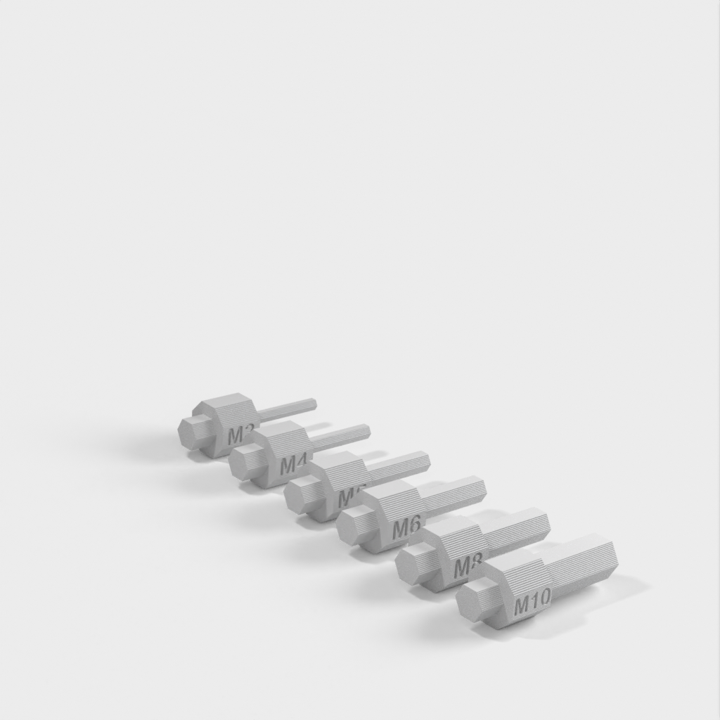 Sechskant-Inbusschlüsselsatz, OMT², in metrischen Größen von M3 bis M10. Dieses Set ist mit jedem Standard-Bithalter und/oder OMT²-Griff kompatibel. Das Set enthält die 6 am häufigsten verwendeten Inbusschlüssel. Die Vorteile dieses Sets bestehen darin, dass es kompakt, einfach zu lagern und zu verwenden ist. Das Set ist in vielen Situationen nützlich, in denen Sie möglicherweise einen Inbusschlüssel benötigen. Bedenken Sie, dass dieses Set niemals einen Satz Inbusschlüssel aus Metall vollständig ersetzen wird, es aber in manchen Fällen nützlich sein kann.