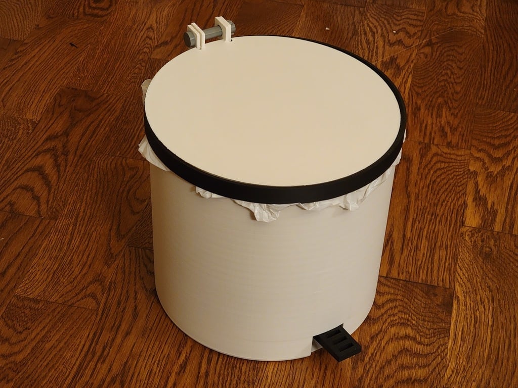 Dies ist ein druckbarer, mit Pedalen betätigter Mülleimer. Das Fassungsvermögen beträgt ca. 7,5 Liter / 2 Gallonen.