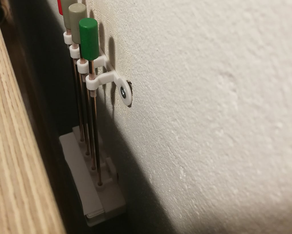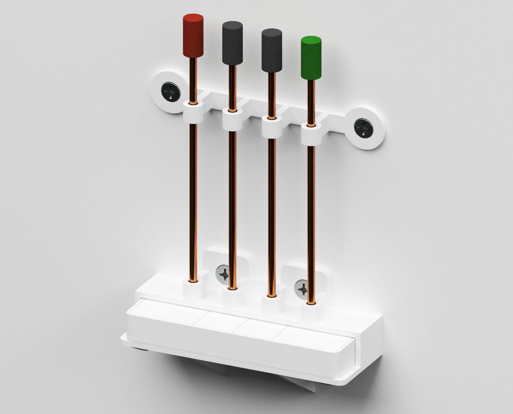 Der Adapter ist so konzipiert, dass er Ihren vorhandenen Hue Dimmer hinter einer minimalistischen Fassade verbirgt. Anstelle der herkömmlichen Fernbedienung haben Sie die Möglichkeit, kleine, ästhetische Taster – wie die vorgeschlagenen Holztaster mit Kupferstäben – direkt in Ihre Wand oder Möbel zu integrieren. So entsteht eine dauerhafte und stilvolle Lichtsteuerung, die sich perfekt in jeden Raum einfügt und sich besonders ideal neben dem Bett eignet, wo ein einfacher Zugang zum Licht unerlässlich ist.