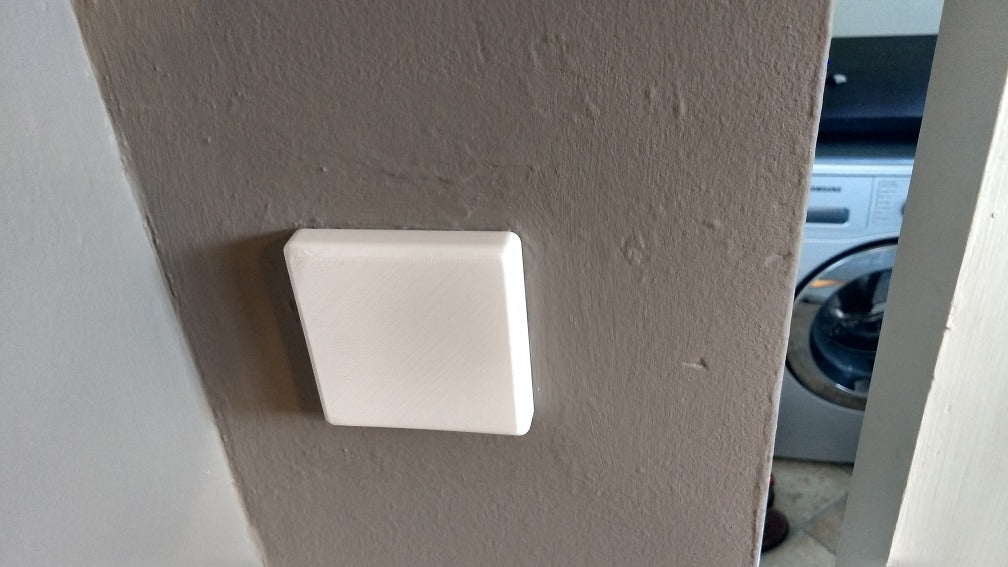 Dies ist eine von mir entworfene Abdeckung, die über jeden quadratischen Lichtschalter gleiten sollte. Es wurde entwickelt, um zu verhindern, dass Lichtschalter versehentlich ausgeschaltet werden, wenn in einem Haus Philips Hue-Lampen mit Hausautomation verwendet werden. Es verfügt über eine kleine Aussparung an der Unterseite, damit Sie es leicht entfernen können, wenn Sie die Kontakte verwenden müssen.