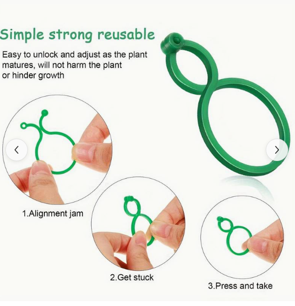 Diese Pflanzenclips bieten optimalen Halt für Ihre Kletterpflanzen. Sie unterstützen das Wachstum von Ranken, Schlingpflanzen und anderen Pflanzen und halten sie aufrecht und geordnet. Dies fördert ein gesundes und effizientes Wachstumsumfeld, in dem die Pflanzen den nötigen Platz zum Gedeihen haben. Die Konstruktion der Clips sorgt dafür, dass sie während des Wachstums der Pflanzen sicher an ihrem Platz bleiben. Sie können sowohl im Innenbereich für Topfpflanzen als auch im Außenbereich im Garten verwendet werden und sind somit eine vielseitige Lösung für jeden Pflanzenliebhaber.