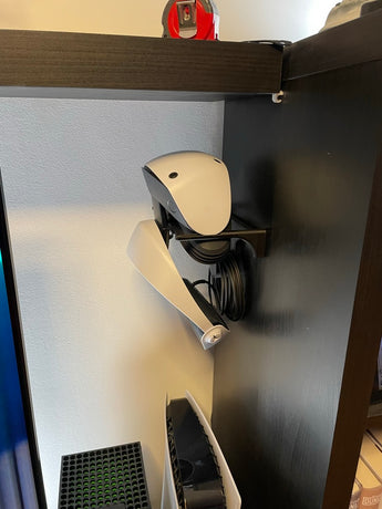 Diese Halterung bietet eine übersichtliche und sichere Aufbewahrungslösung für Ihr PlayStation VR2 (PSVR2) HMD. Sie hilft, Ihr Virtual-Reality-Headset an Ort und Stelle zu halten, wenn es nicht verwendet wird, und schützt es vor unnötigen Stößen oder Beschädigungen.