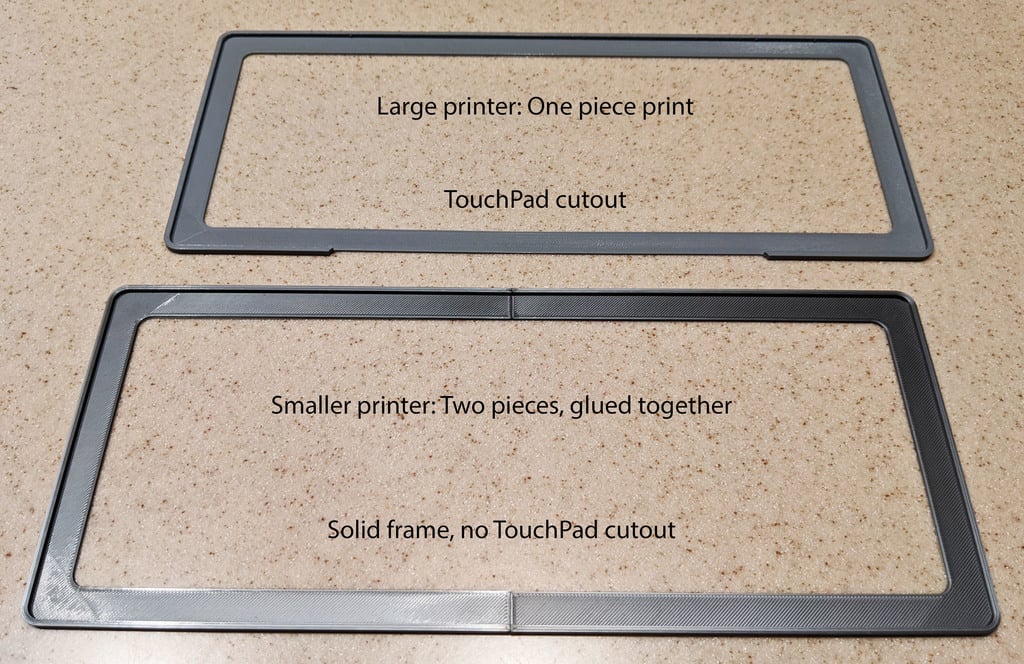 Die Kompatibilität mit neueren MacBook Pro-Modellen, insbesondere mit Butterfly-Tastaturen, ist gewährleistet und wurde mit einem 2018 MacBook Pro 15" getestet. Sie haben die Möglichkeit, zwischen zwei Designvarianten zu wählen: einem Vollrahmen, der die gesamte Tastatur umschließt, oder einer Variante mit einer praktischen Aussparung an der Vorderseite, die dafür sorgt, dass Ihr TouchPad vollständig zugänglich bleibt.