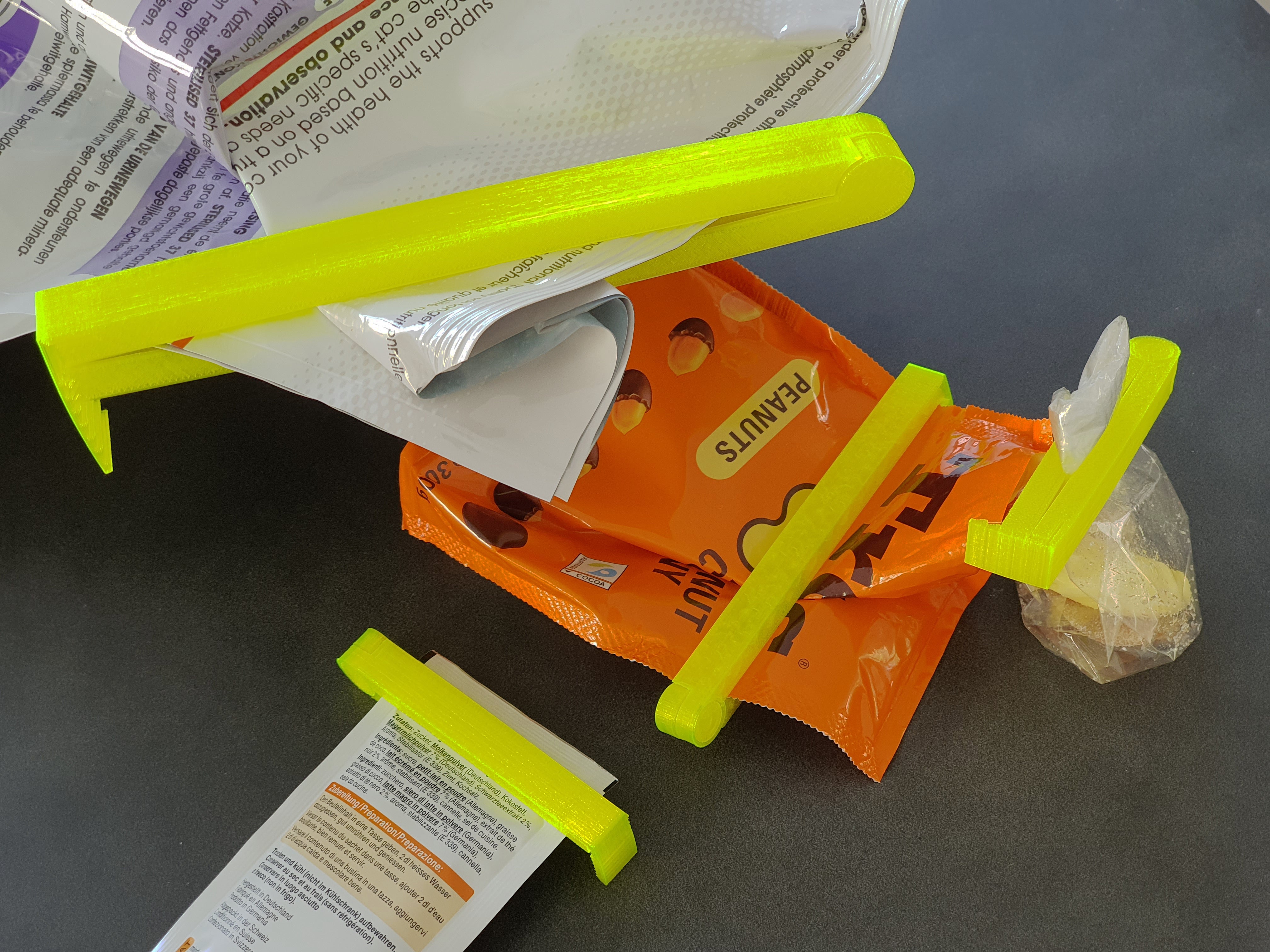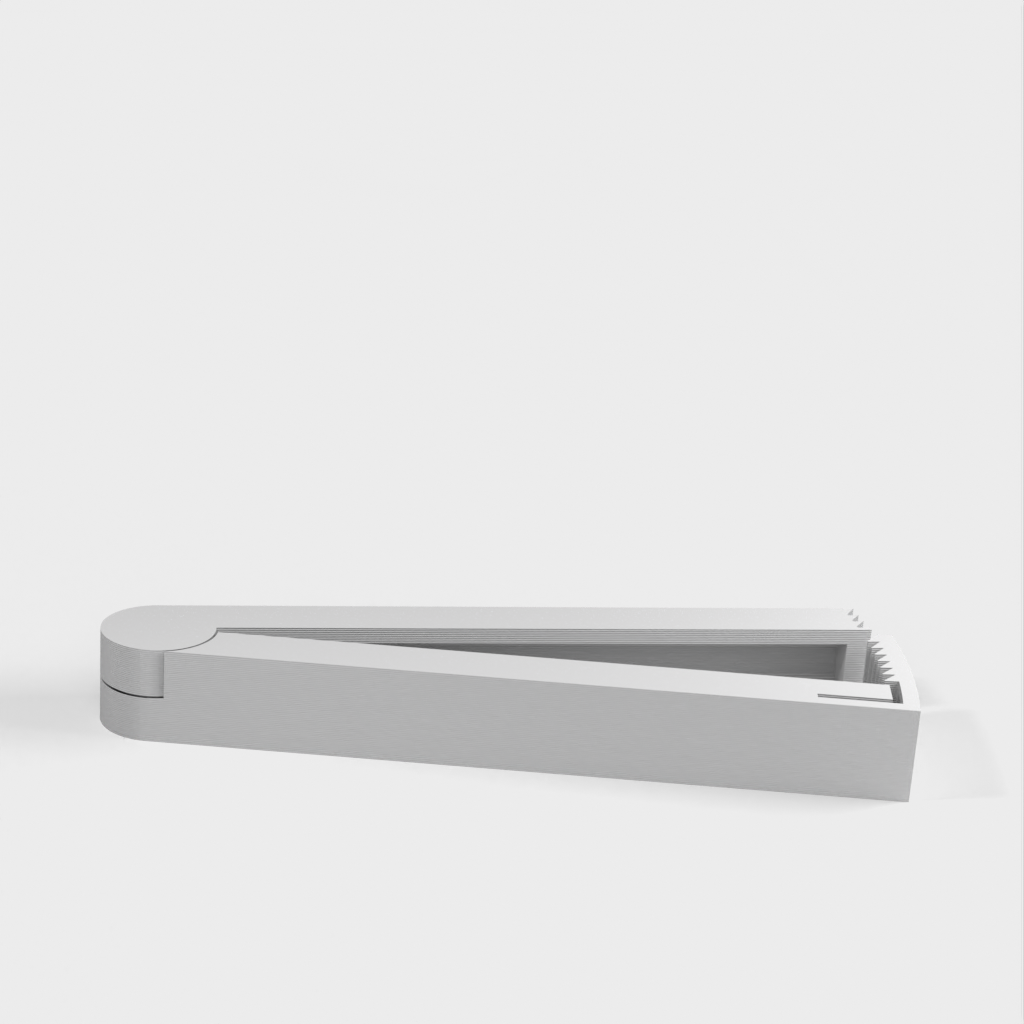 Ein praktischer Taschenclip mit Ratschenmechanismus, der ohne Unterstützung direkt bedruckt werden kann. Dieser Clip ist perfekt, um Ihre Taschen geschlossen und frisch zu halten. Mit der mitgelieferten OpenSCAD-Datei können Sie die Größe ganz einfach an Ihre Bedürfnisse anpassen.