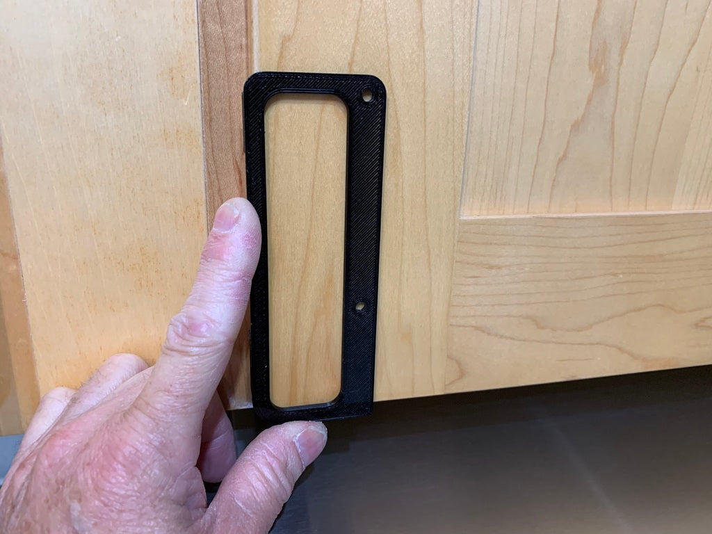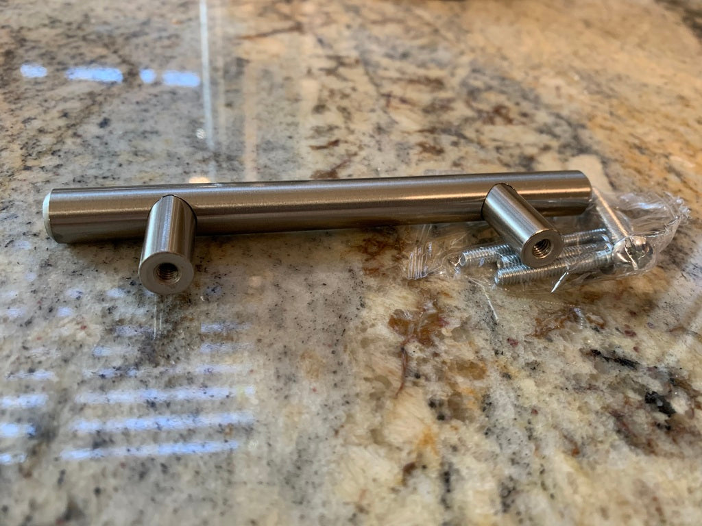 Anwendertipp: Bohren Sie vorsichtig Ihr erstes Schraubenloch und halten Sie die Schablone an Ort und Stelle, indem Sie eine Schraube durch die Schablone in das Loch einführen. Für bessere Ergebnisse verwenden Sie Vollgriffe anstelle von Hohlgriffen. Die stabilen Griffe, die ich verwendet habe, habe ich bei Amazon gekauft.