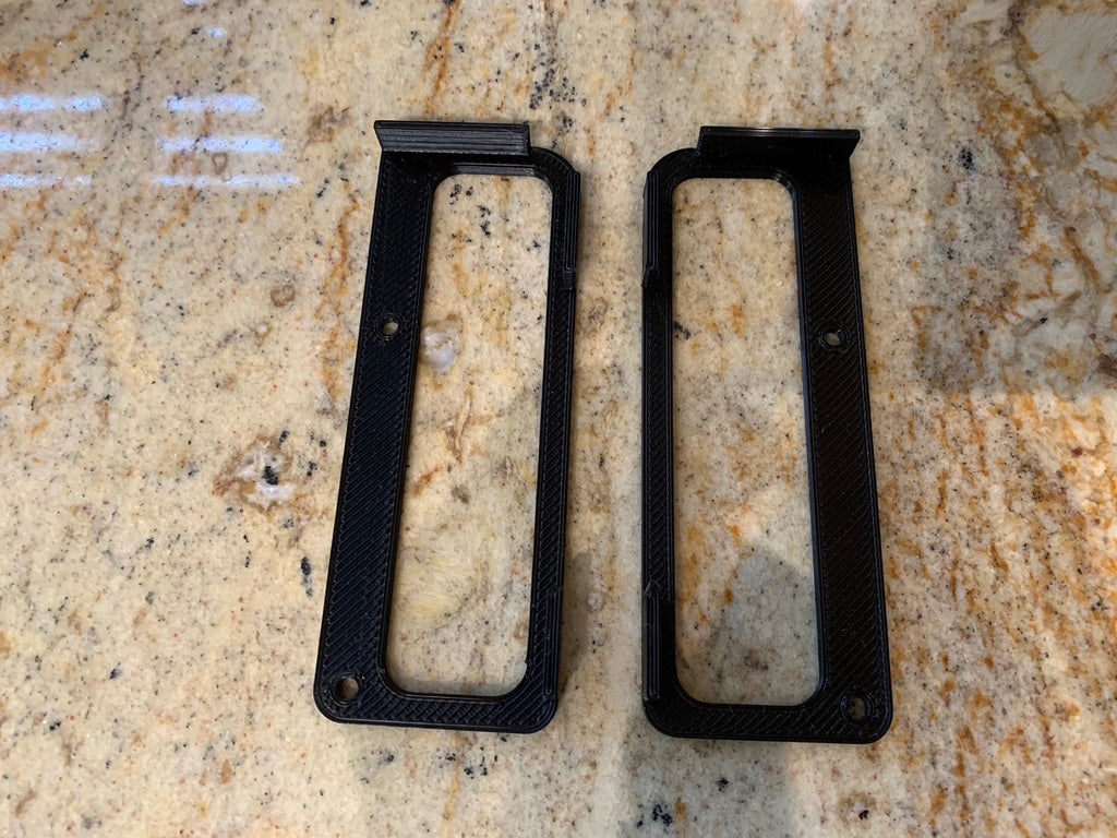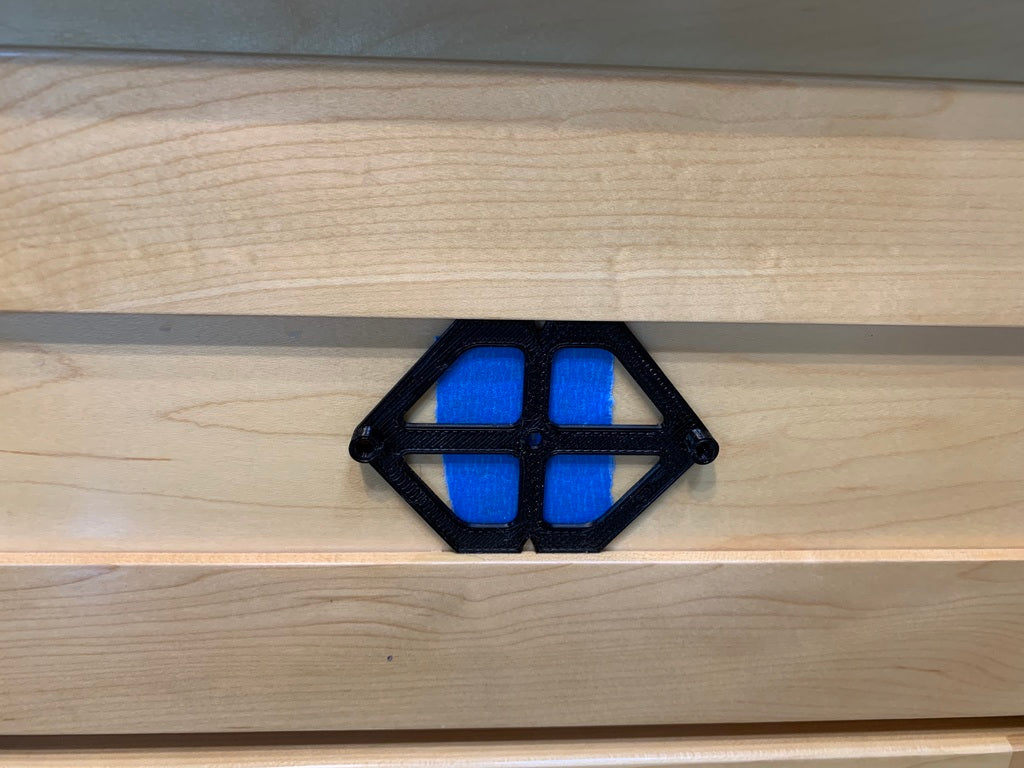 Schablonen zum Bohren von Griffen an Schränken und Schubladen, konzipiert für Griffe mit 2 Schrauben und einem Schraubenabstand von 3". Sie können sowohl eine linke als auch eine rechte Version der Türschablone erhalten, indem Sie die STL-Datei in Ihrer Slicer-Software (Gcode-Generator) spiegeln. . Die Schablone für die Schubladen passt perfekt auf die oberen Schubladen. Markieren Sie die Mitte von links nach rechts auf einem Stück Klebeband. Bei den höheren, unteren Schubladen kleben Sie ein Stück Klebeband auf die Vorderseite der Schublade, um die Mitte zu markieren In der Mitte der Vorlage befindet sich ein Loch, damit Sie Ihre Auswahl leicht finden können.