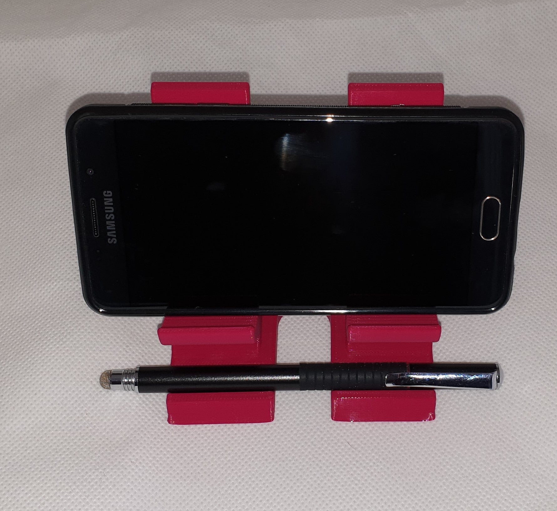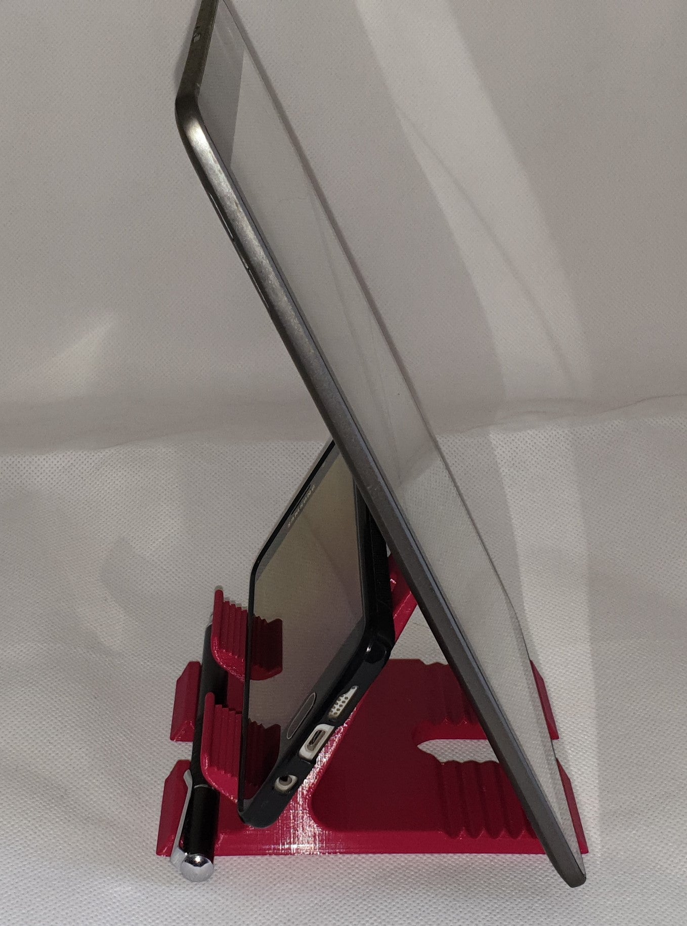 Dies ist ein Ständer für Smartphones. Damit können Sie Ihr Telefon ganz einfach auf einem Schreibtisch oder einer anderen ebenen Fläche platzieren, um es einfach bedienen und betrachten zu können. Es eignet sich perfekt zum Ansehen von Videos, Lesen, Videoanrufen oder sogar als einfacher Ständer zum Aufladen.