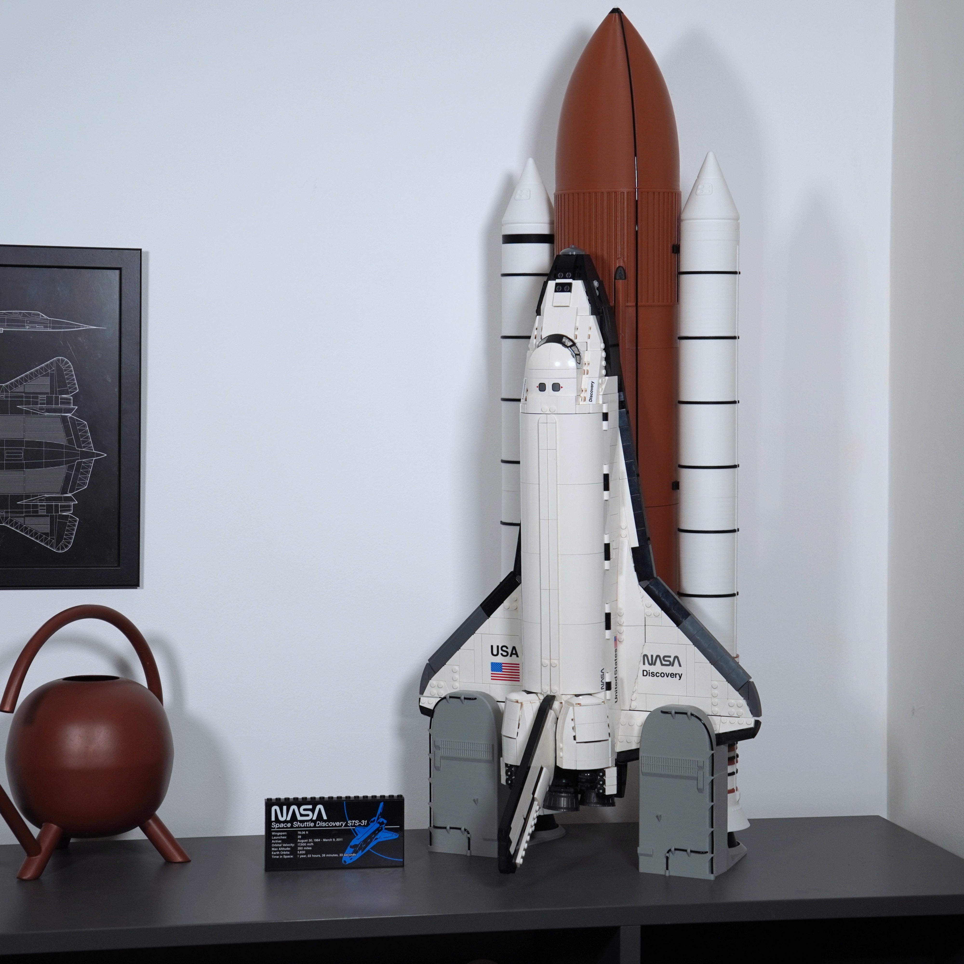 - Modellen er nøjagtigt skaleret til rumfærgen og måler 80 cm i højden.