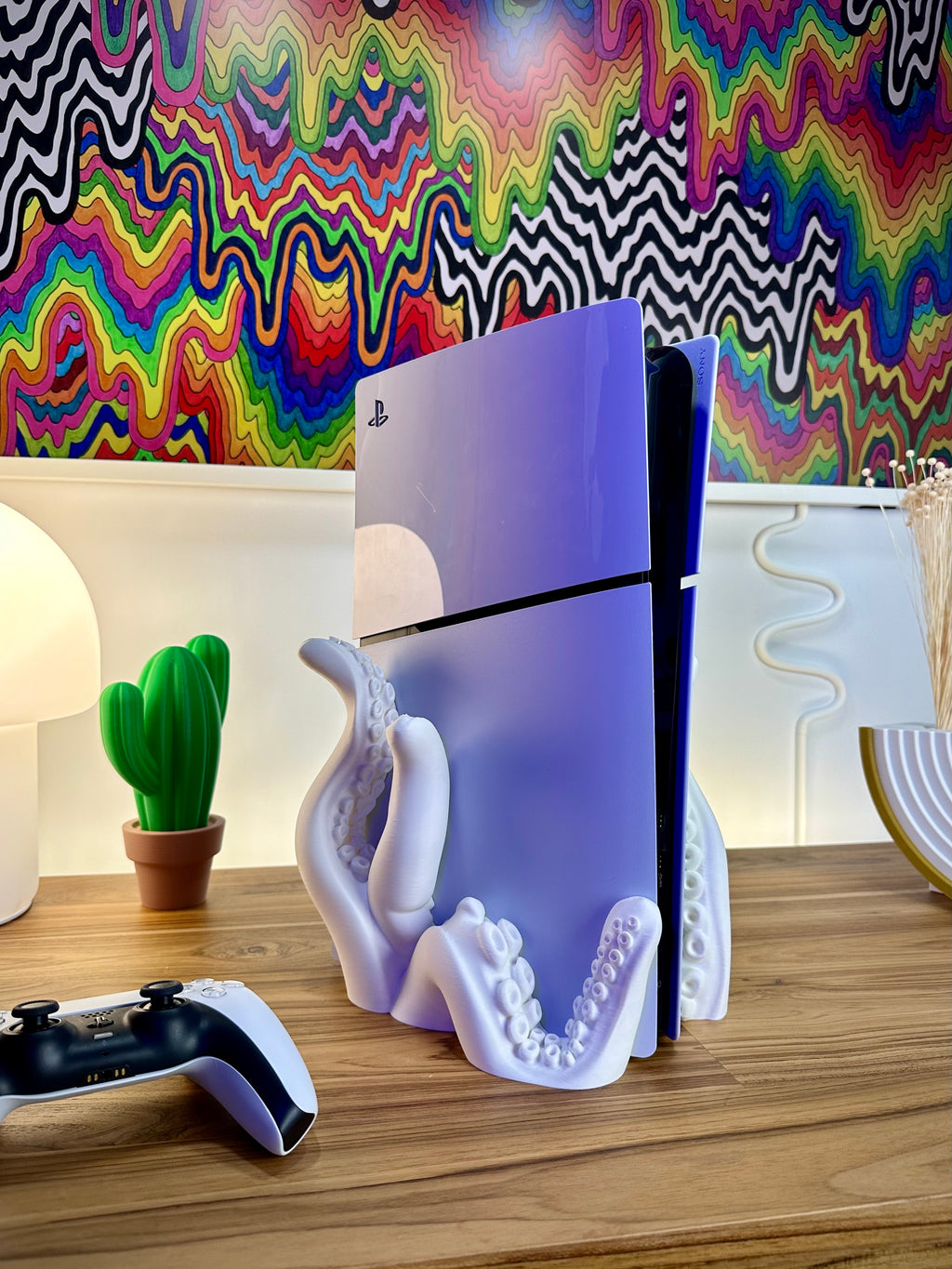 Verleihen Sie Ihrem Gaming-Setup mit dem Tentacle Stand für die PlayStation 5 Slim, der sowohl für die digitale als auch für die Disc-basierte Version entwickelt wurde, einen einzigartigen maritimen Stil. Dieser Ständer vereint Ästhetik mit Funktionalität und ermöglicht es Ihnen, Ihre Konsole sicher und stilvoll zu präsentieren.