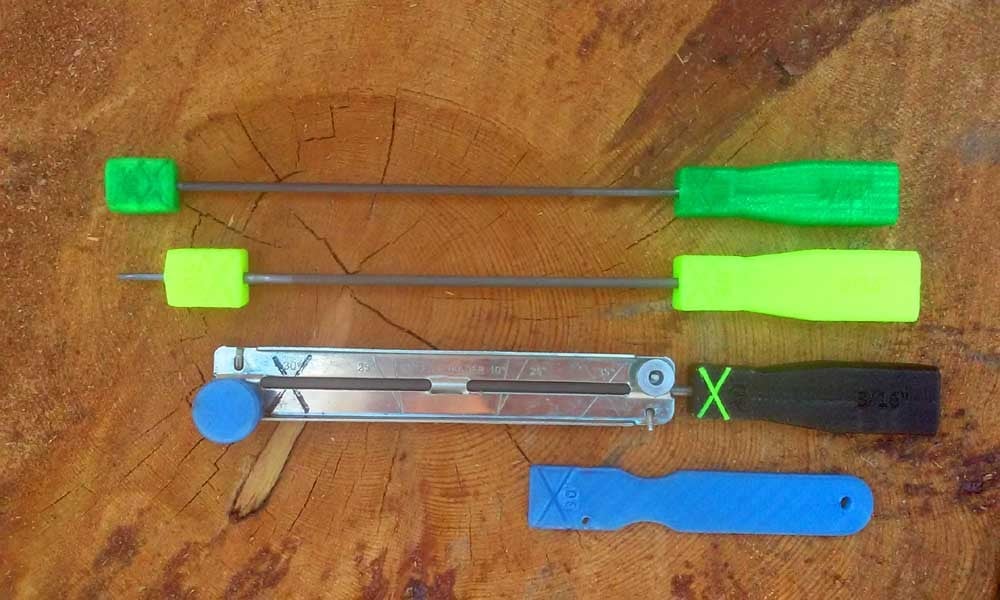 Mit diesem Griffset für Kettensägenfeilen können Sie je nach Richtung der Feile mit zwei Händen schärfen, entweder durch Ziehen oder Drücken. Die Griffe können mit voller Geschwindigkeit gedruckt werden und können an jedem Ende unterschiedliche Formen haben, zum Beispiel quadratische und flache Griffe, wobei es sich hierbei um relative Begriffe handelt, die nur der leichteren Identifizierung dienen. Darüber hinaus umfasst das Produkt einen Knopf und einen Drehgriff, die beide zusammen mit den Griffen bedruckt werden können. Benötigen Sie Öl für Ihr Kettensägenschwert? Schauen Sie sich diese Links für weitere hilfreiche Werkzeuge an: Ölspitze für Kettensägenschiene und Unterstützung für Kettensägenschiene .