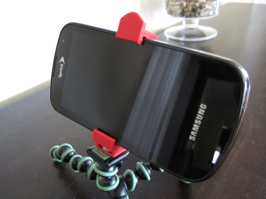 Die Telefonstativhalterung ist ein universelles Design, mit dem Sie Ihr Telefon auf jedem Stativ, einschließlich Gorillapod, befestigen können. Es verwendet eine standardmäßige 1/4-20-Mutter, um die Position des Telefons auf dem Ständer zu sichern.
