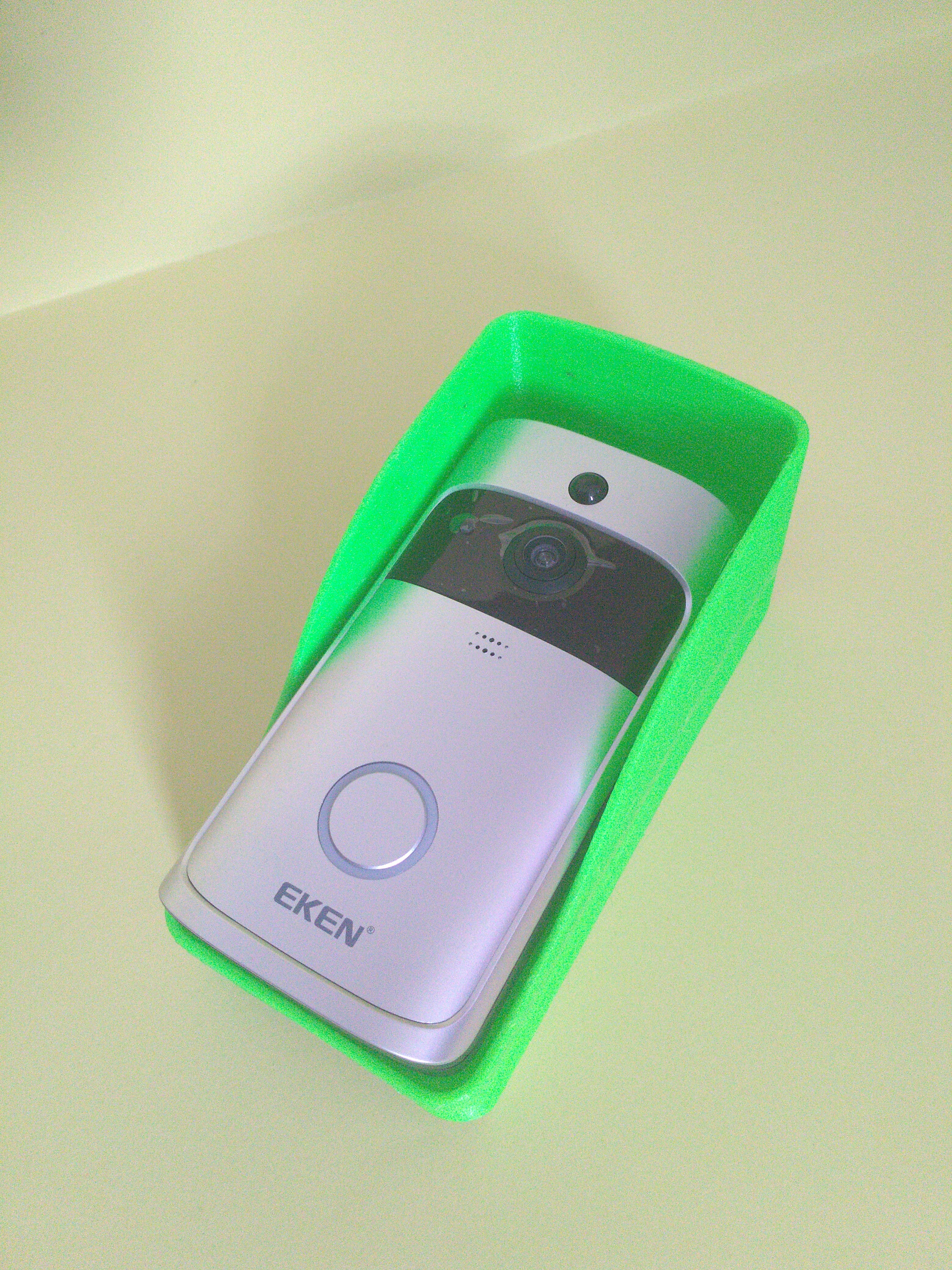 Einfache und robuste Wandhalterung für eine Ring Doorbell Eken V5. Die kompakte Größe (78 x 161 mm) erleichtert die Montage an einer Wand oder einem Zaun, und der Halter ist so konzipiert, dass zwischen der Türklingel und der Oberfläche ein Abstand von etwa 3 mm besteht, sodass Sie die Türklingel leicht entfernen können, indem Sie sie nach oben drücken.