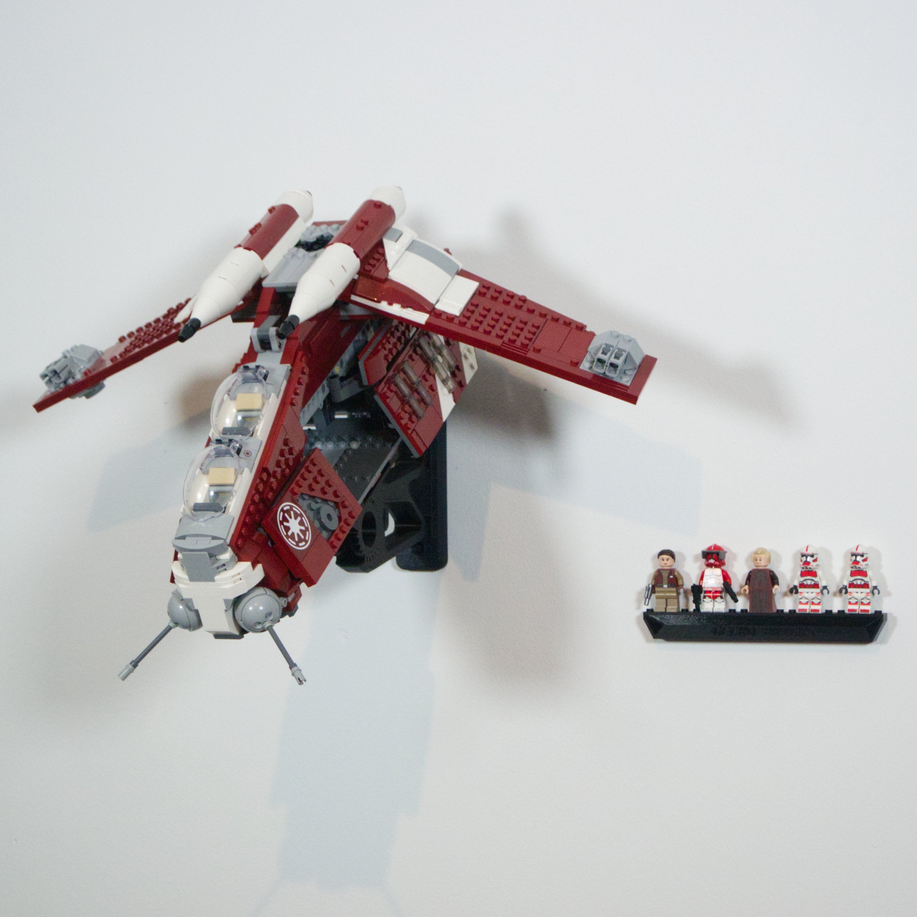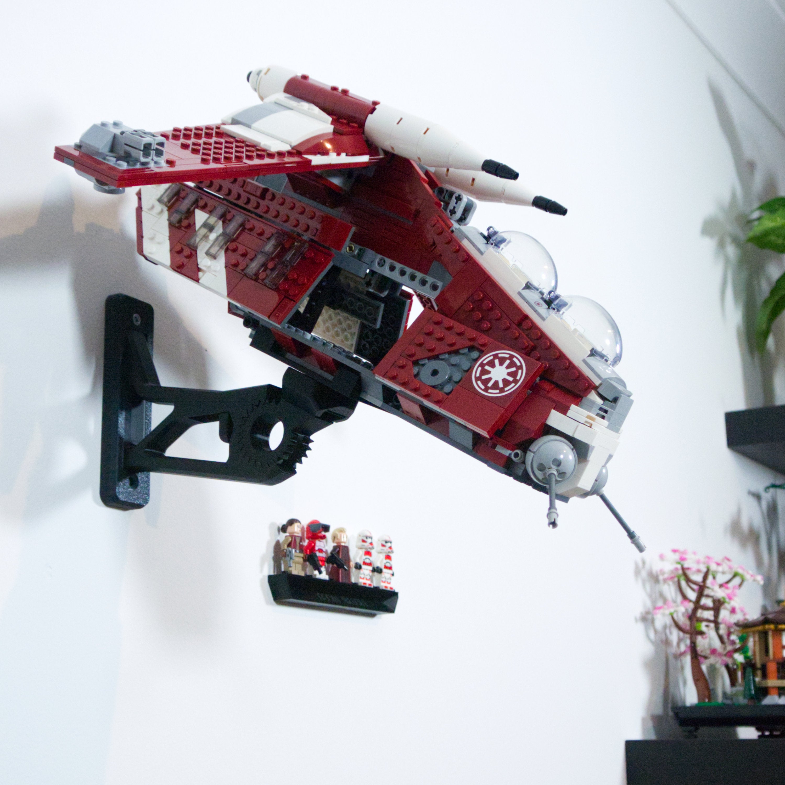 Dette vægbeslag gør det muligt at fremvise din Star Wars Coruscant Guard Gunship i otte forskellige orienteringer. Den diskrete arm støtter sættet sikkert og forbliver skjult bag modellen. Der medfølger desuden en separat holder til minifigurer, som nemt monteres, hvilket sikrer en komplet og organiseret udstilling af din samling.