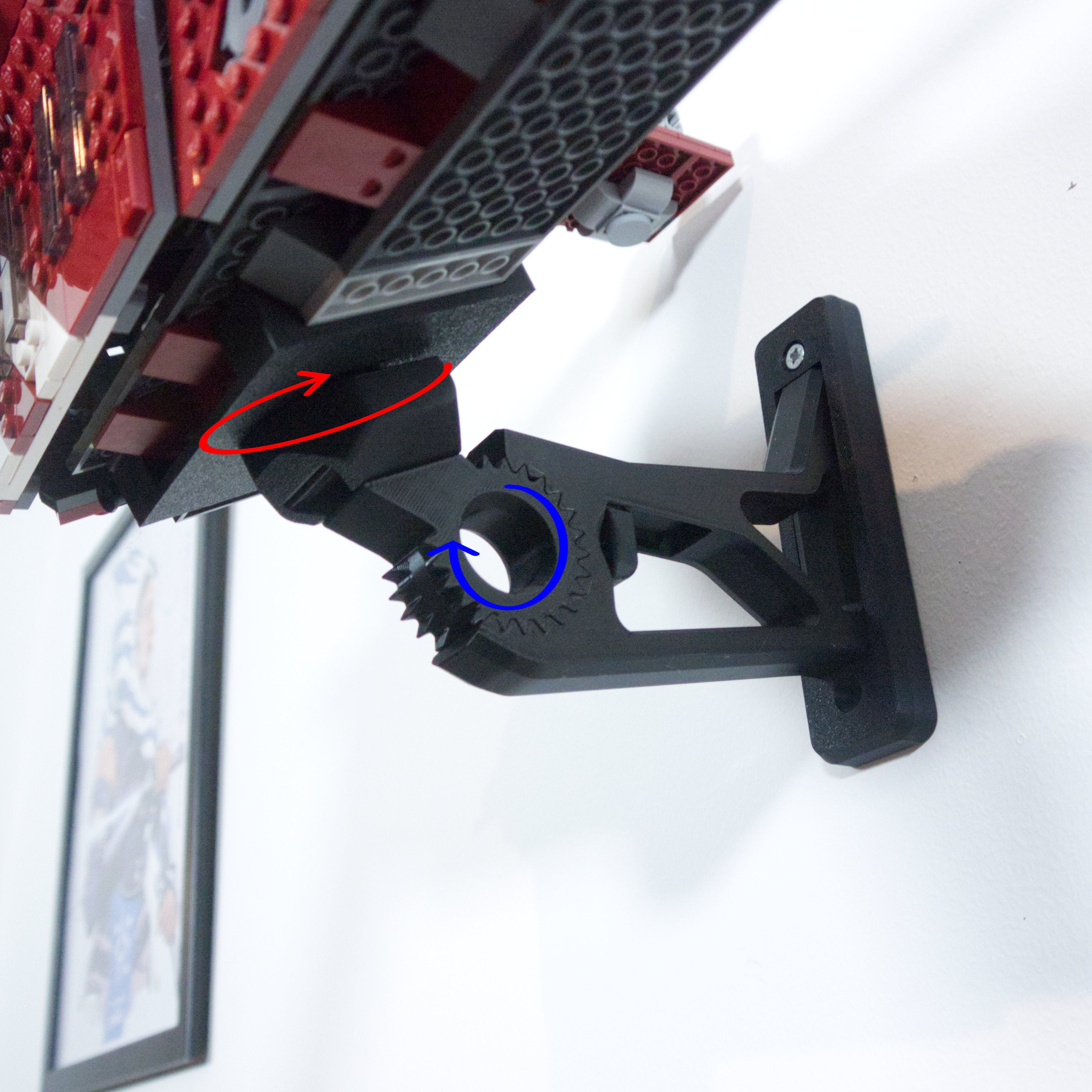 - Der Arm der Halterung verfügt über zwei Drehgelenke, die acht verschiedene Ausrichtungen des Modells ermöglichen.
