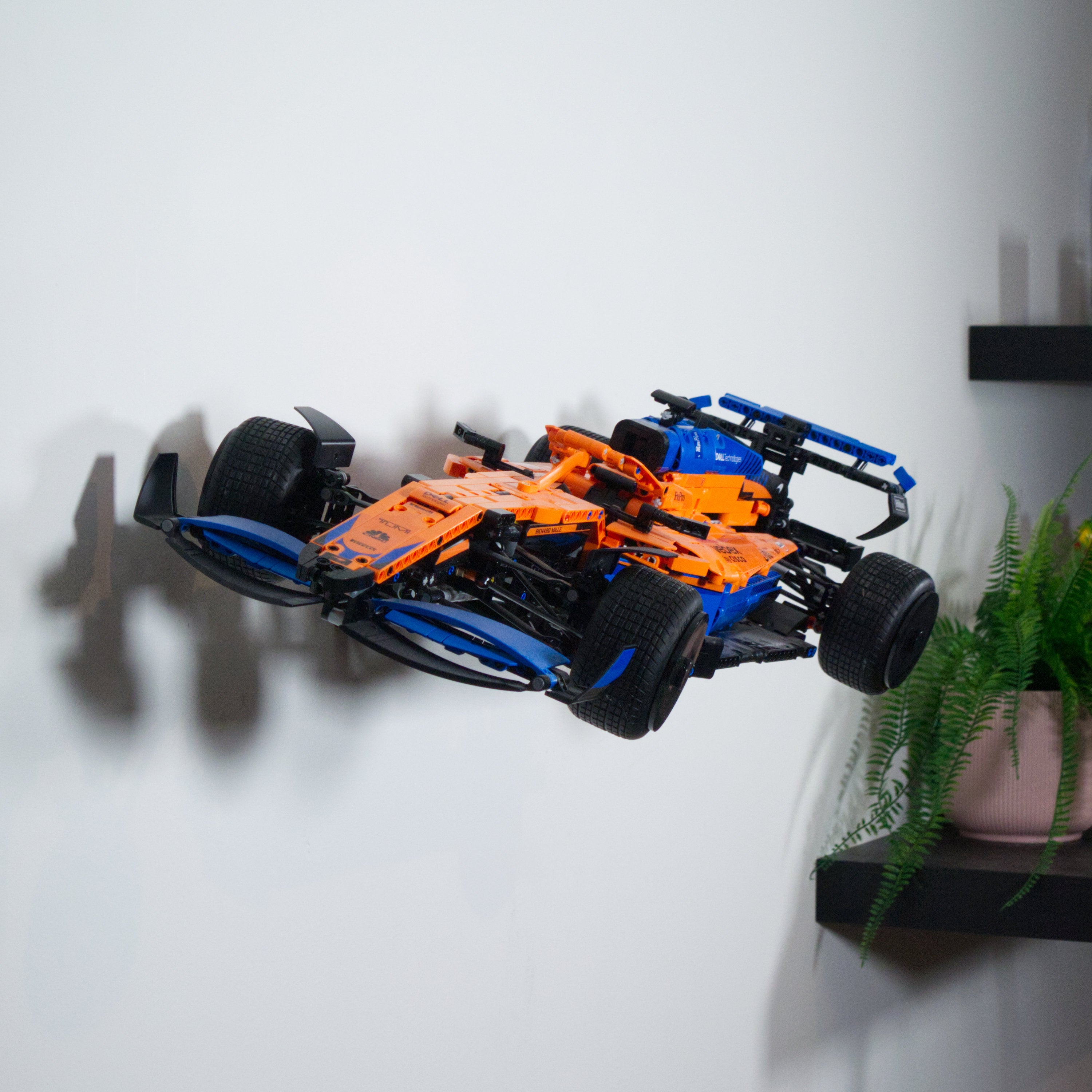 Dette vægbeslag er specifikt udformet til LEGO Technic McLaren Formel 1 racerbilen. Det gør det muligt at præsentere modellen enten vandret eller lodret tæt mod væggen. Beslaget er konstrueret således, at bilen let kan tages ned og sættes op igen efter behov.