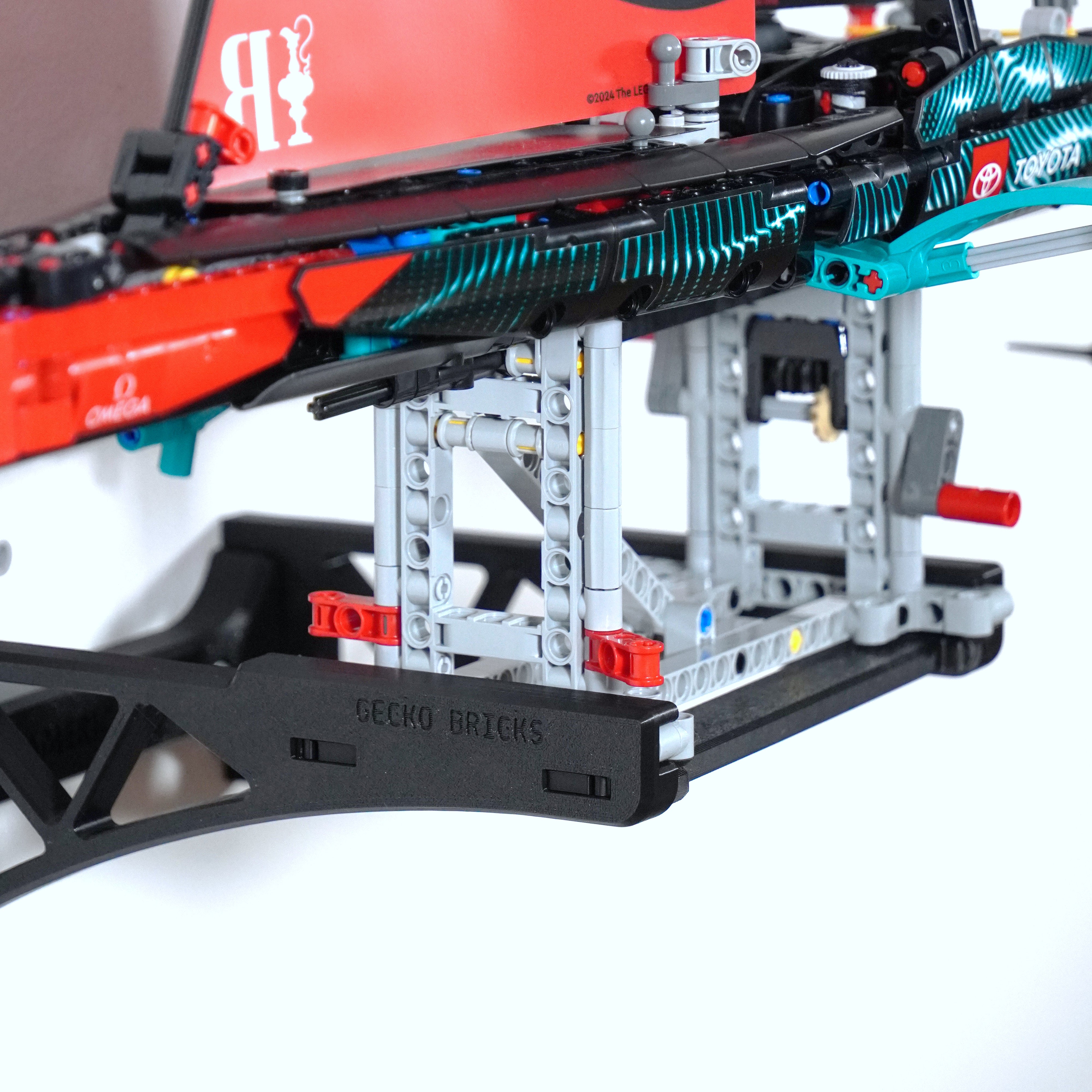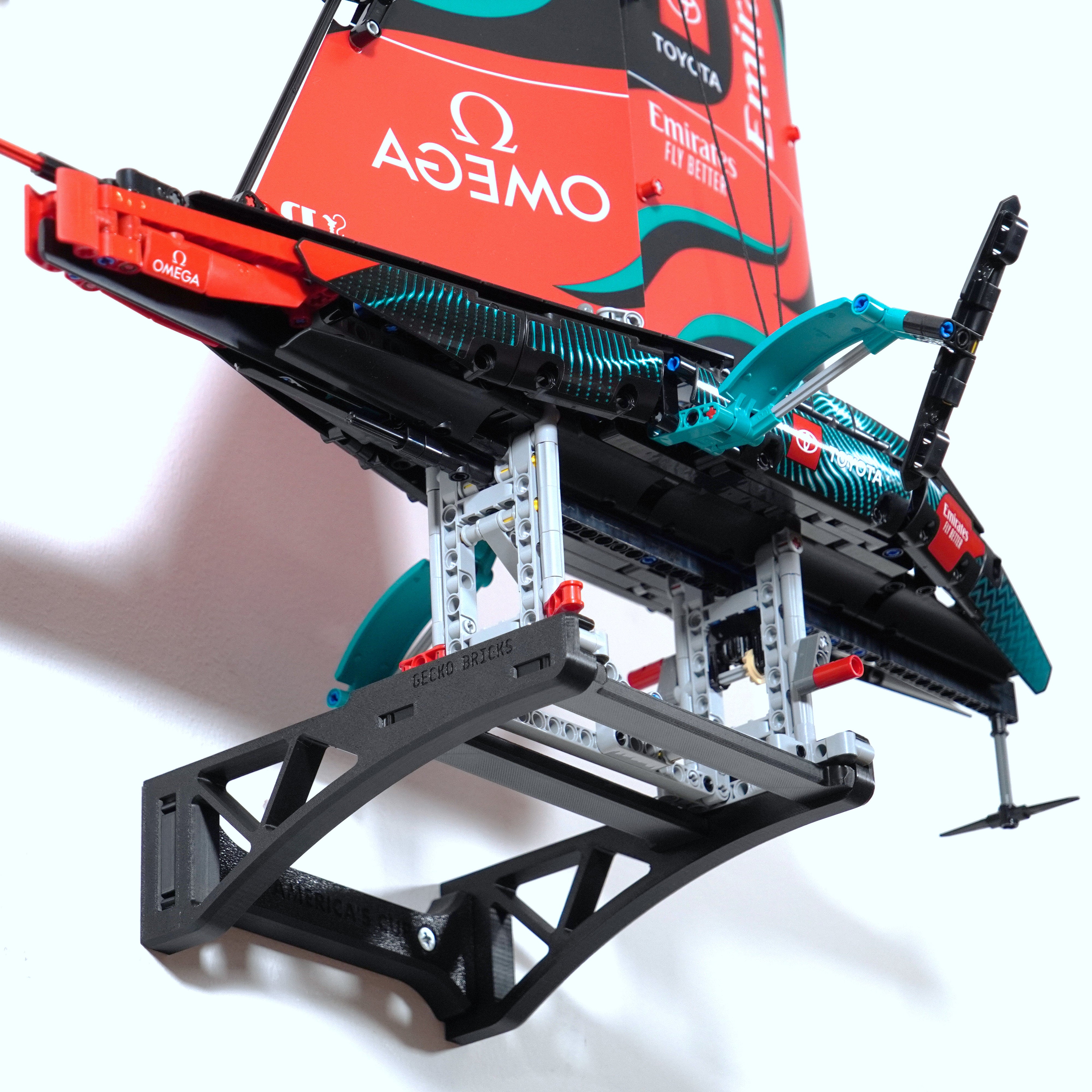 - Wandhalterung, die für die sichere Aufhängung der Technic Emirates New Zealand AC75 Yacht entwickelt wurde.
