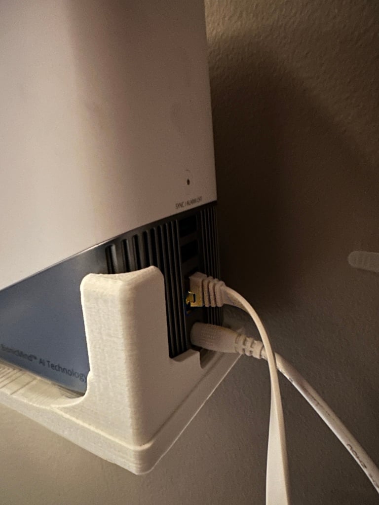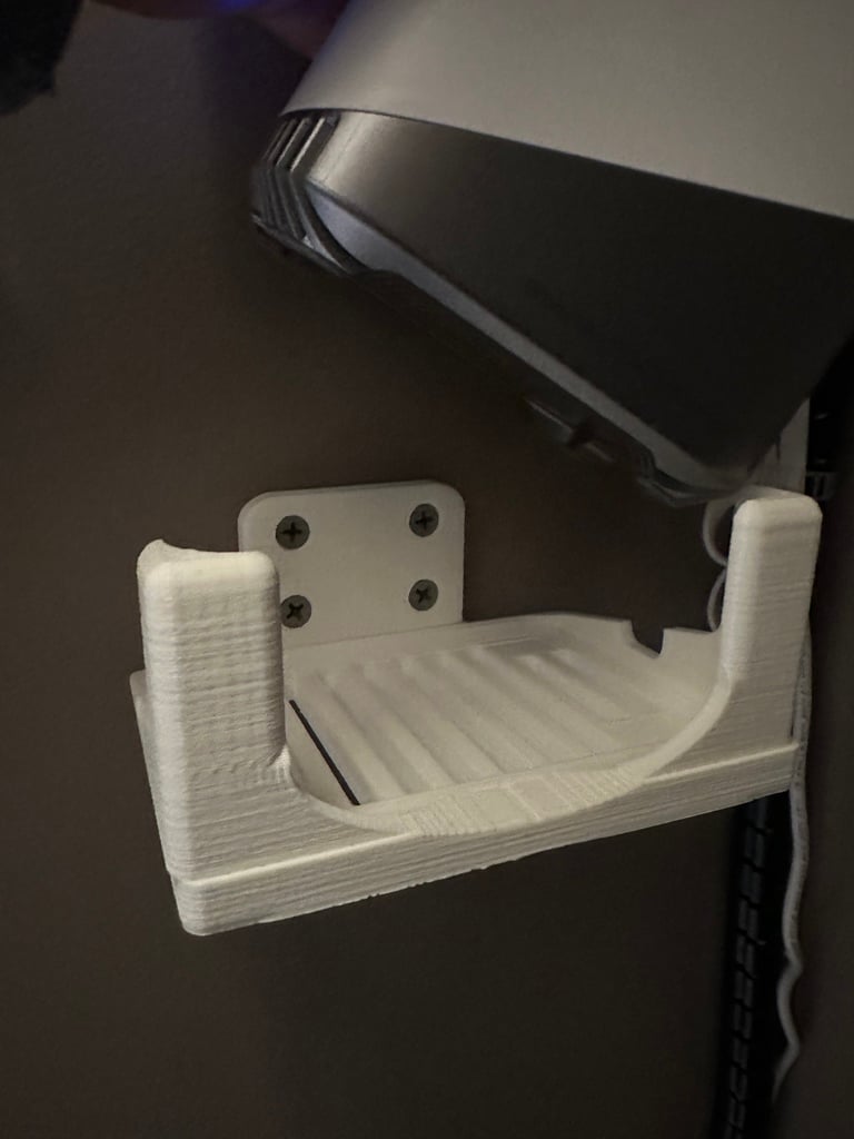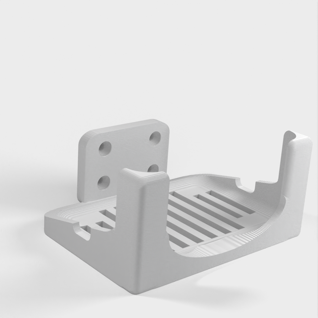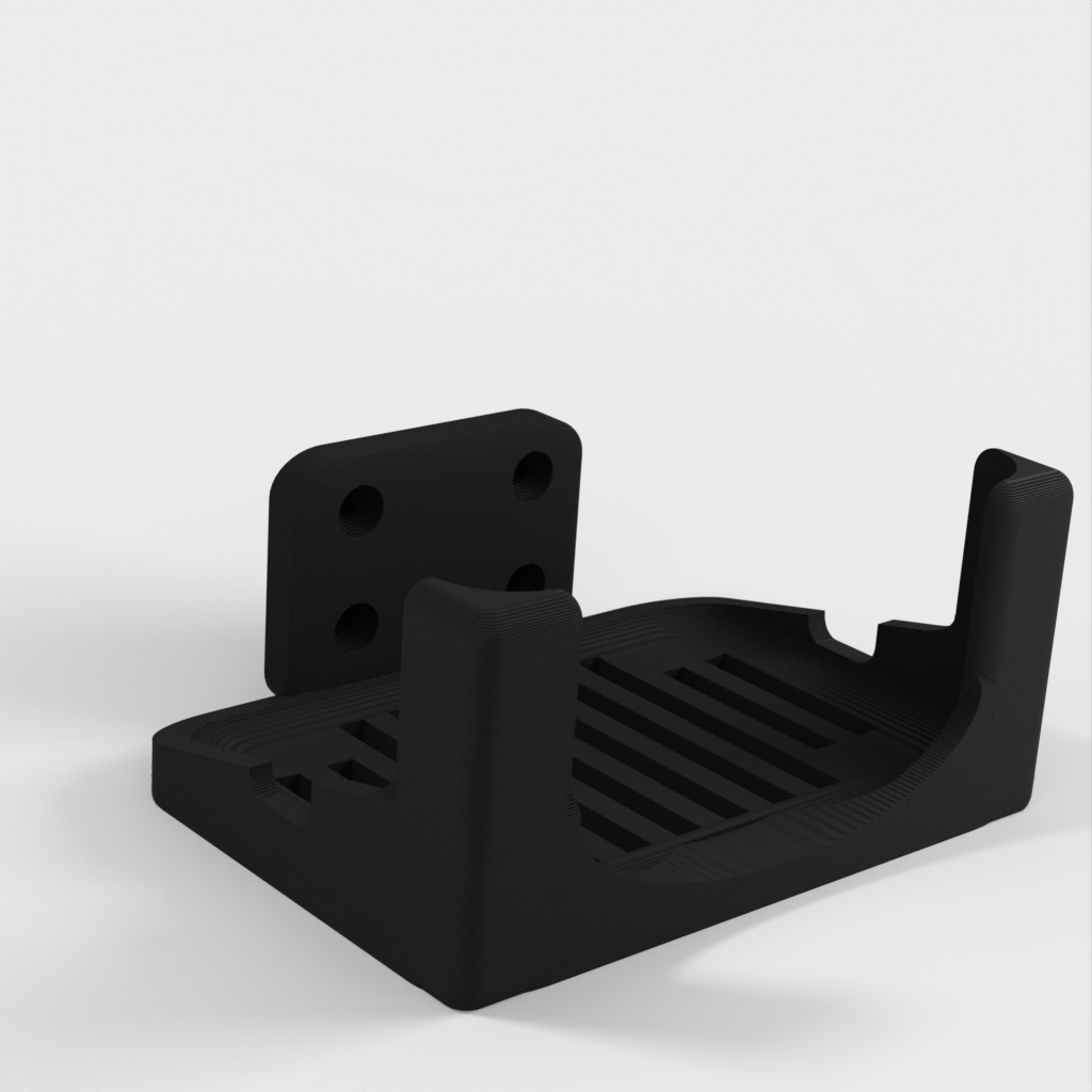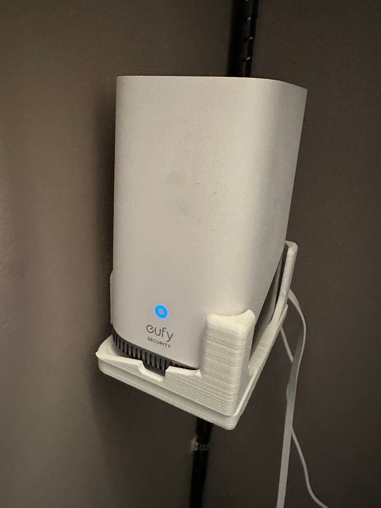 Wandmontage für Eufys Sicherheitssystem HomeBase 3. Das Montagezubehör ist auf Belüftung und Wandstärke ausgelegt. Es verfügt über Lüftungsschlitze an der Unterseite und Öffnungen in den Ecken für die Luftzirkulation. Die Wände sind für zusätzliche Steifigkeit dicker. Perfekt für die Platzierung in der Nähe Ihres Netzwerk-Switches, da er fest mit dem Ethernet verbunden ist. Beachten Sie, dass das in den Beispielen gezeigte Produkt 3D-gedruckt ist.