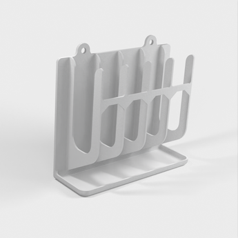 Dieser an der Wand montierte Schwammhalter eignet sich perfekt für die Montage im Schrank unter der Spüle. Es verfügt über eine integrierte, leicht zu reinigende Auffangschale und eine solide Hinterkante, um Feuchtigkeit von der Wand fernzuhalten.