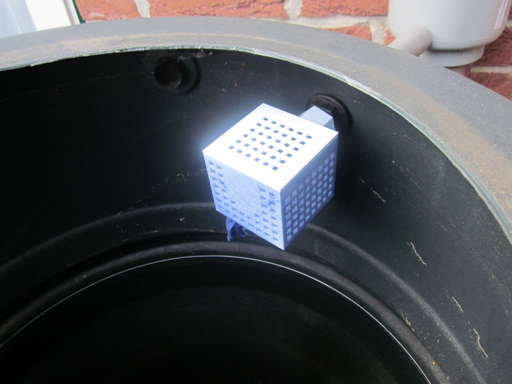 Regenwasserfass-Wasserfilter, passend für ein Fass mit einem Rohr, das eine M27-Mutter erfordert. Der Filter ist ca. 7 cm breit und 6,5 cm hoch. Es wird empfohlen, den Filter in regelmäßigen Abständen zu reinigen, um eine optimale Filterung zu gewährleisten.
